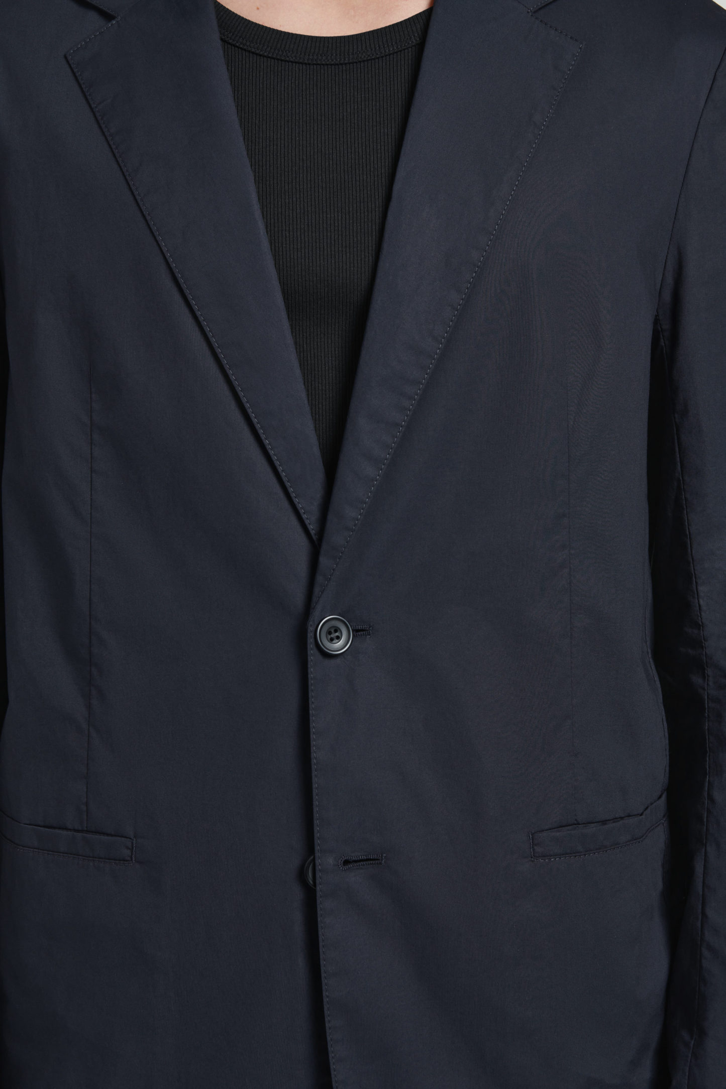This single-breasted blazer lends itself to formal settings, but can be dressed down for casual events too. Crafted from soft Pima cotton, it's tailored on our relaxed-fitting block and shaped with curved sleeves for an unstructured finish. It features welt pockets, cuff plackets and a vent at the back. Style it with the matching trousers.