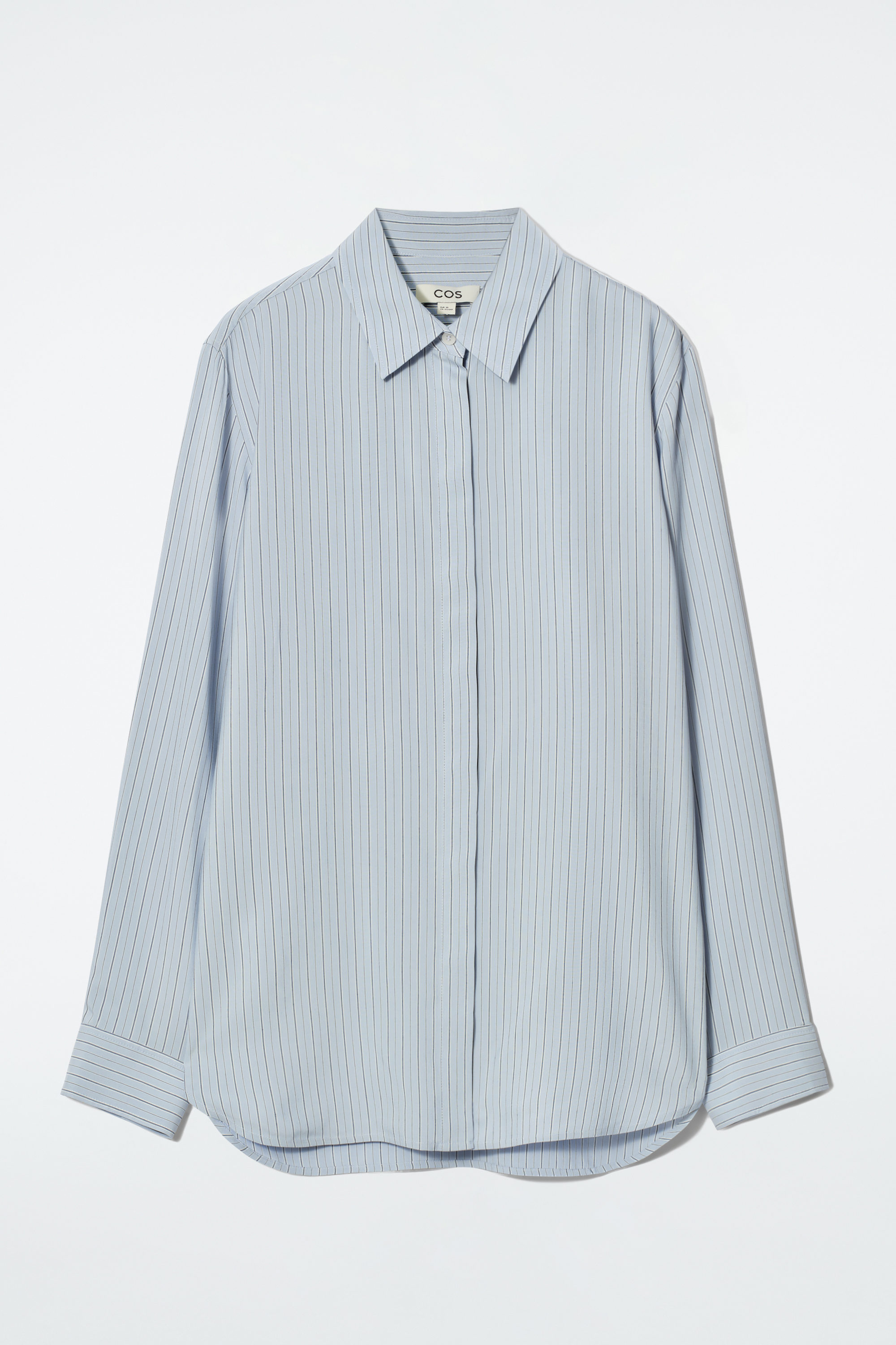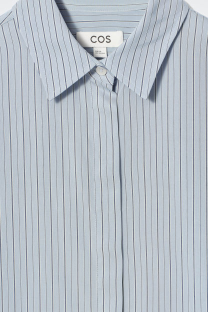 This modern shirt is tailored in an effortless shape that borrows from menswear. It's made from a fluid ECOVERO™ Viscthtose blend that's patterned with contrasting pinstripes and features a pointed collar, buttoned cuffs and a bias-cut seam across the back.