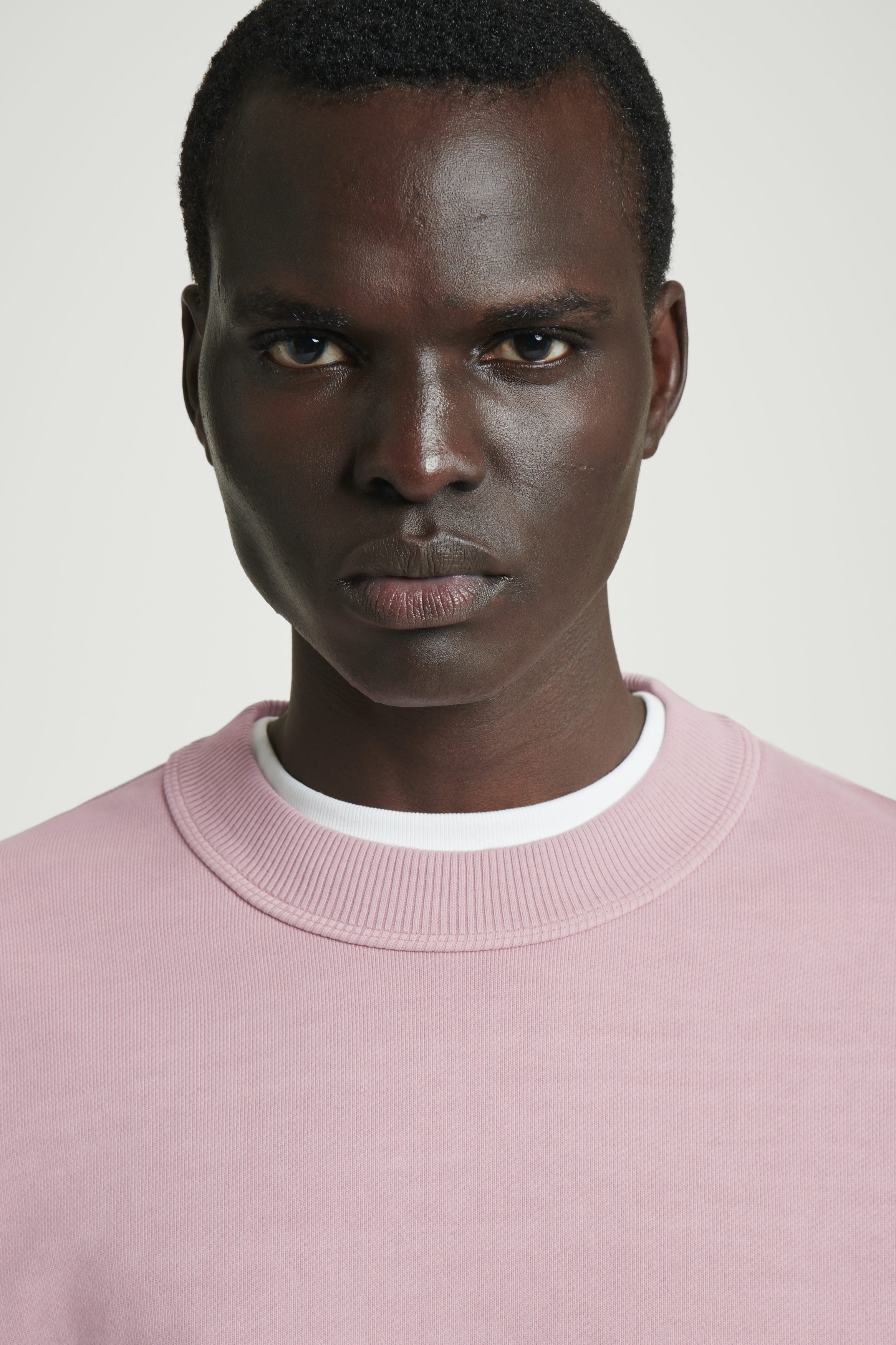 Väldesignad loungewear lägger grunden för din lediga garderob. Denna tröja har en tvättad, rosa nyans och tillverkad i mjuk, återvunnen trikå av ekologisk bomullsblandning. Den har en rundad krage och ribbad fåll som ger en avslappnad silhuett och gör tröjan enkel att styla med chinos eller denim.