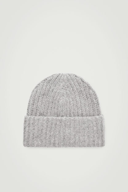 En skön mössa har en given plats i garderoben när det blir kallt ute. Den här är stickad av en mjuk och värmande alpackablandning med återvunnen och RWS-certifierad ull som är ofärgad för en naturlig, grå nyans. Den är ribbstickad för en bekväm, åtsittande passform med bred, uppvikt kant.