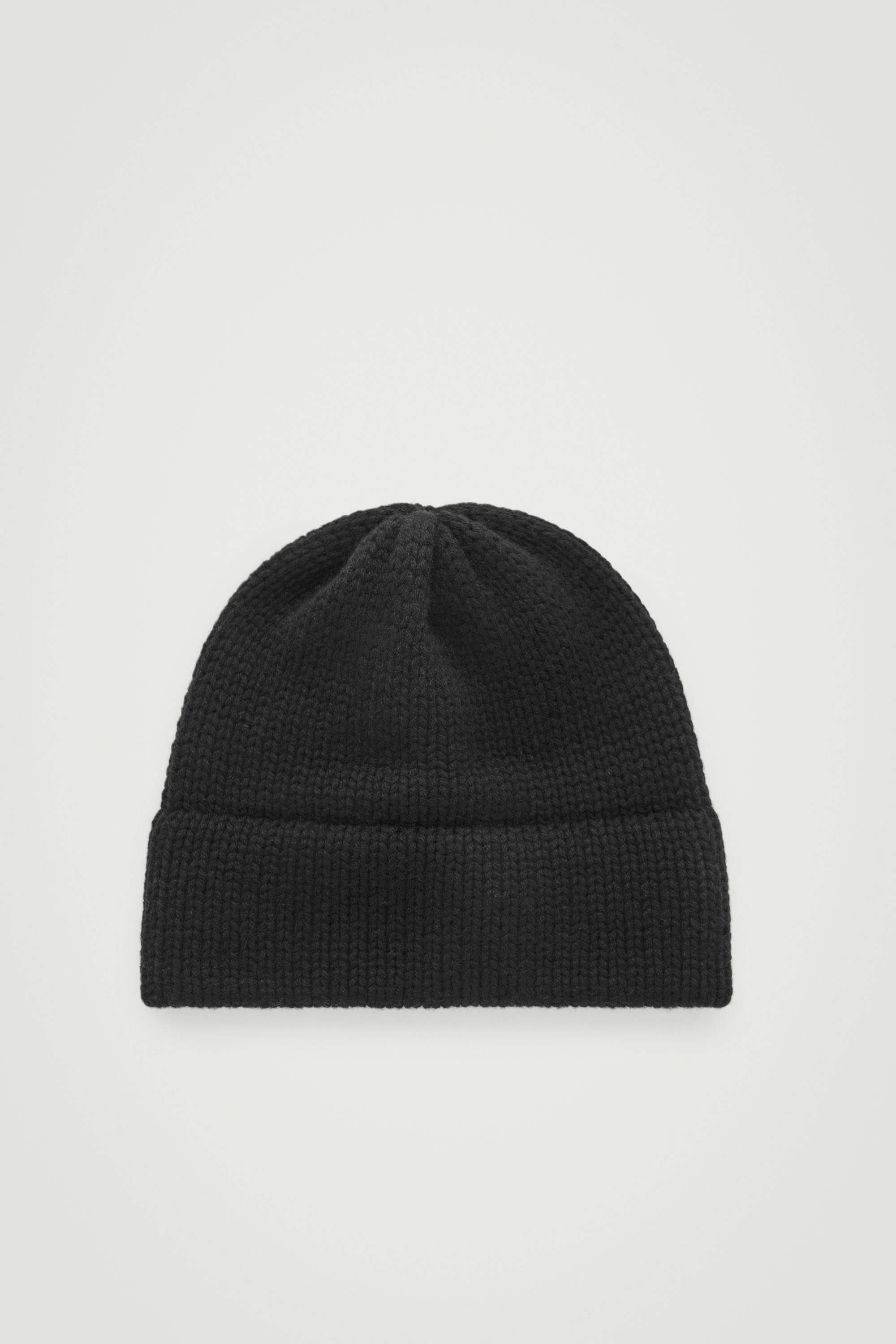 En elegant uppdatering av vinteraccessoarer som lyfter din garderob under de kallare månaderna. Denna lyxigt mjuka mössa är ribbstickad av premium RWS-ull och återvunnen kashmir samt har ett stickat brätte.