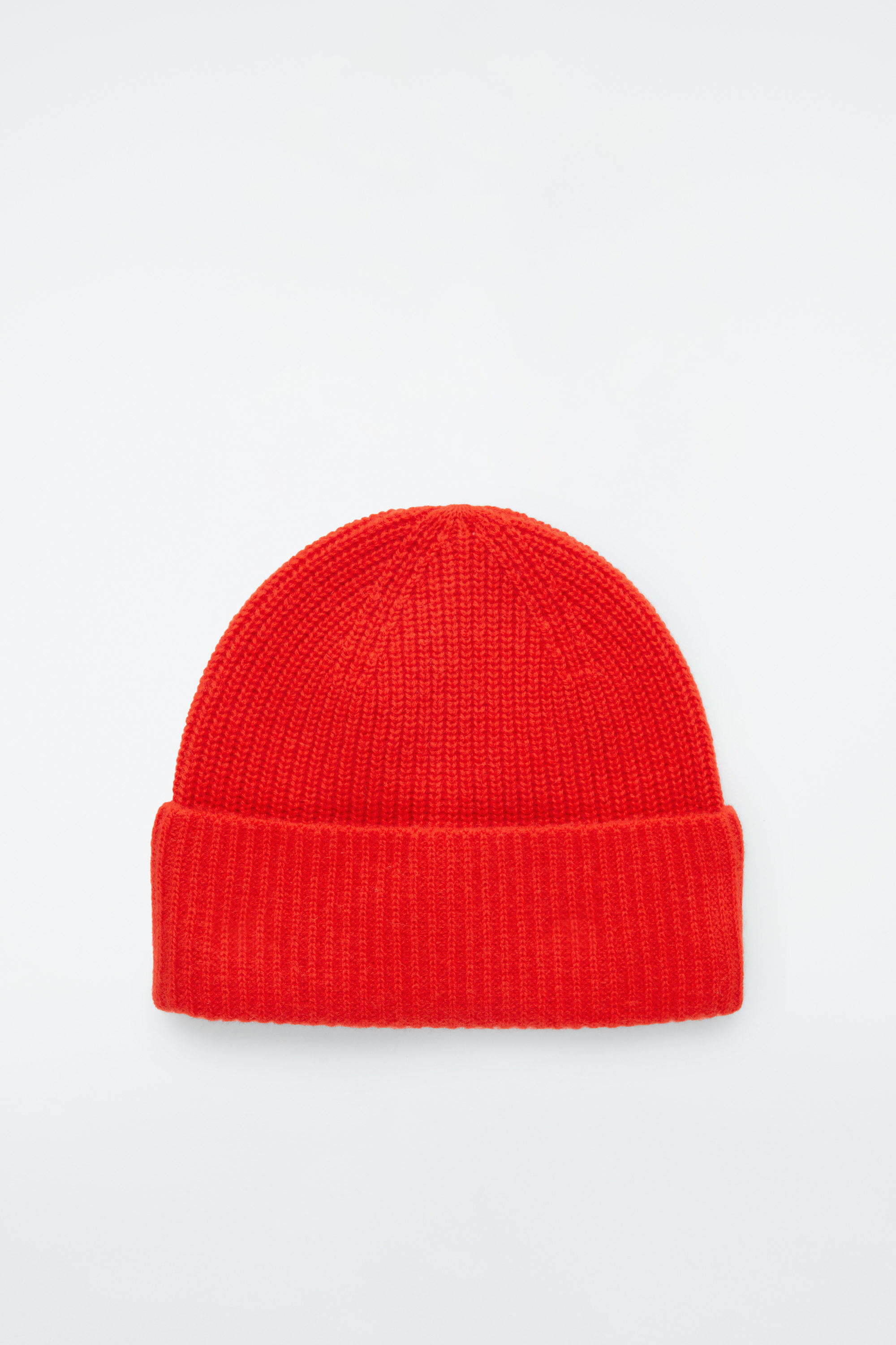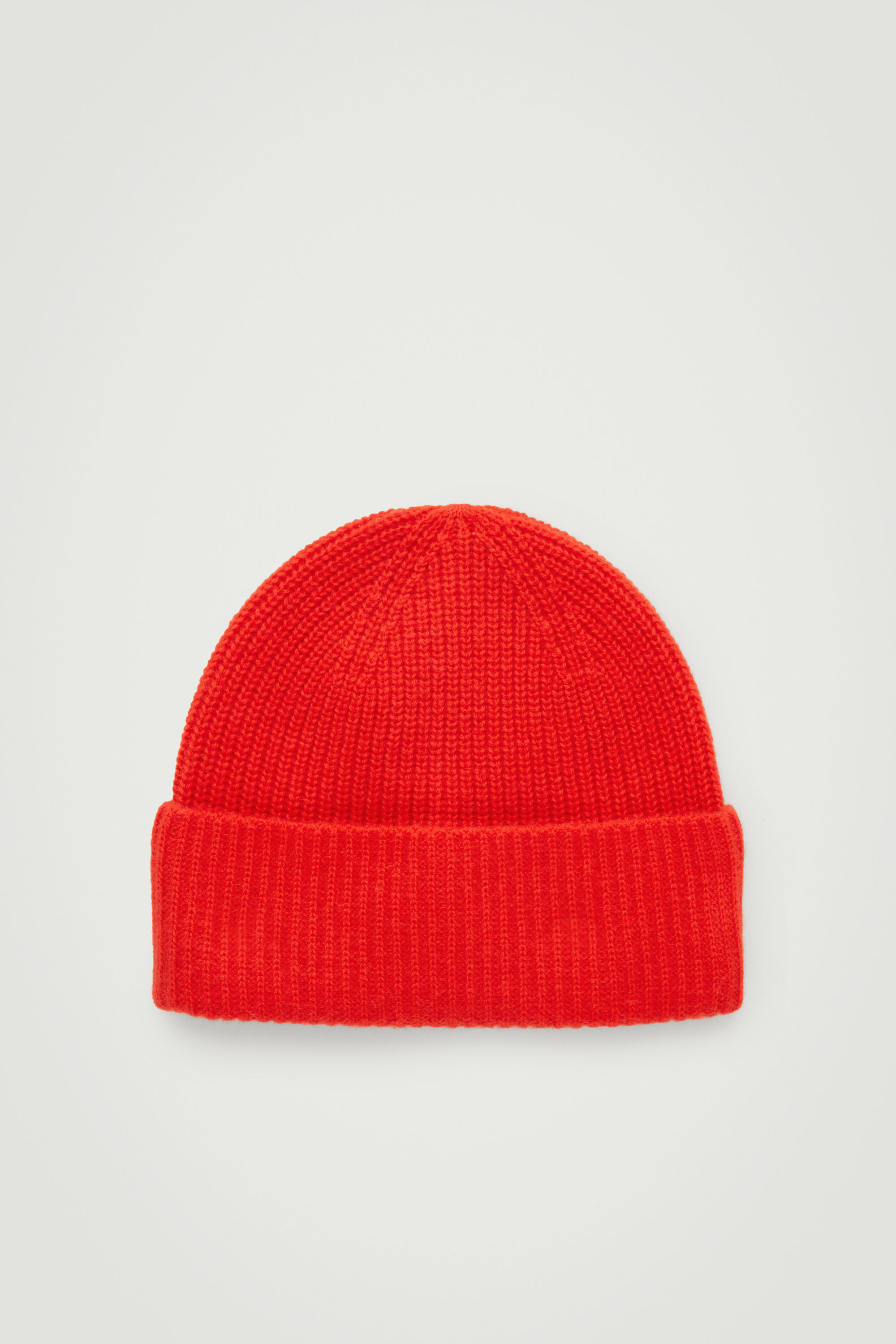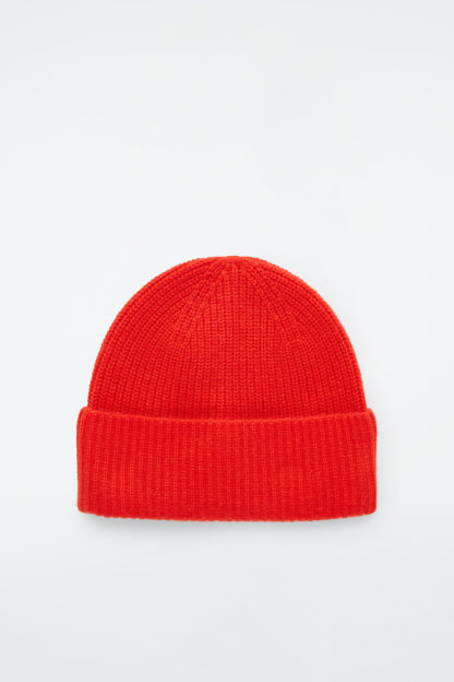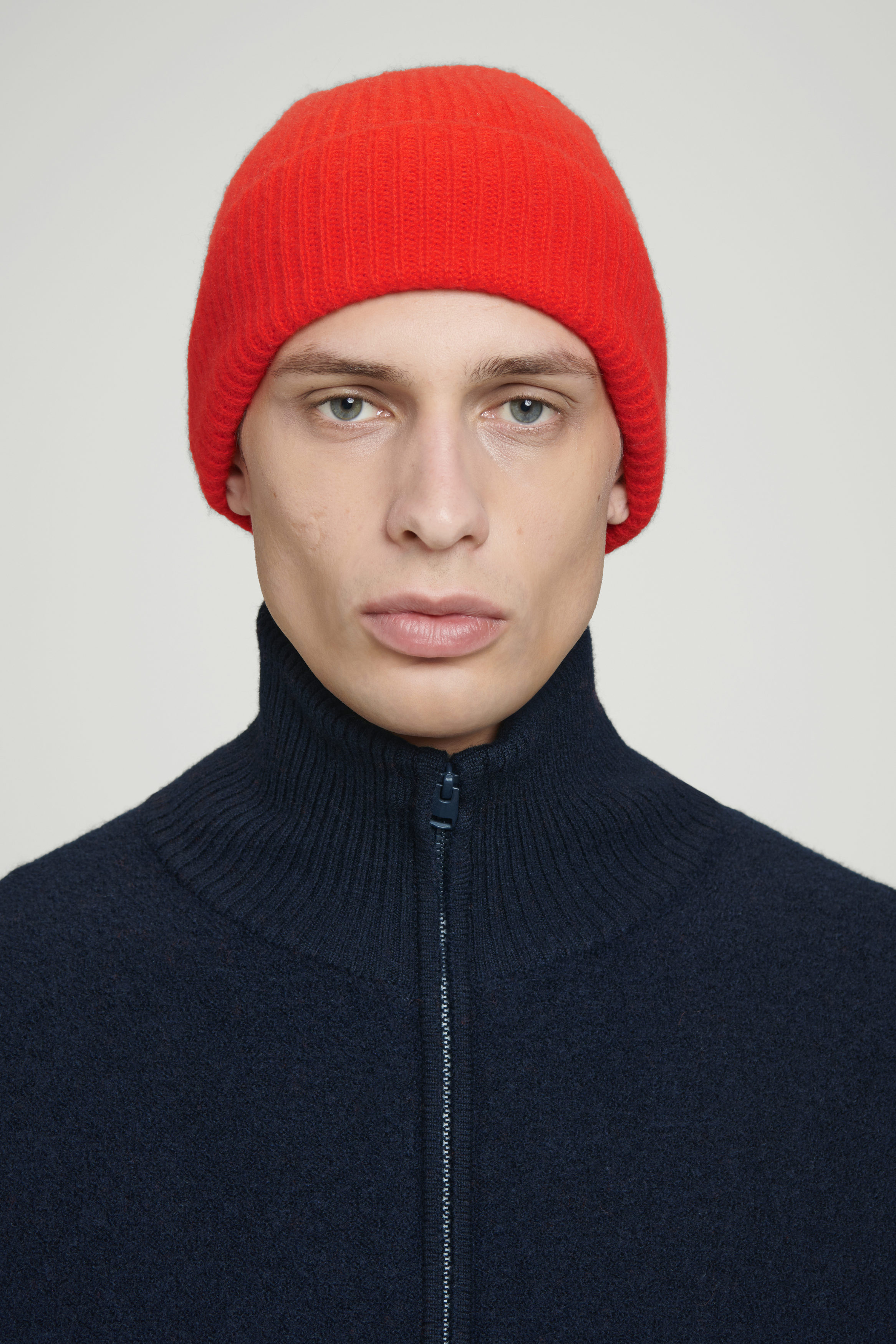 Den här mössan är oumbärlig i kallare väder och är tillverkad i en lyxig blandning av ull och kashmir i en tidlöst uppfriskande, röd nyans. Den ribbstickade konstruktionen är varm och den uppvikta kanten kan justeras för önskad passform.