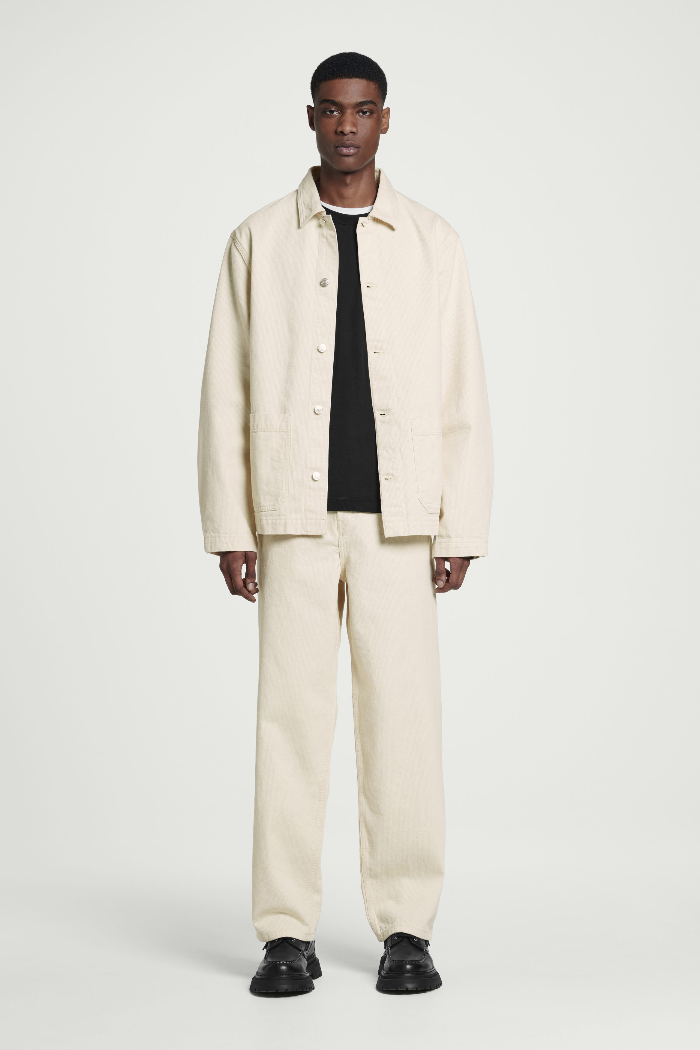 - Raka ben, avslappnad passform, hellånga, medelhög midja