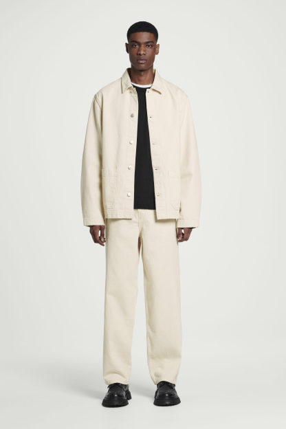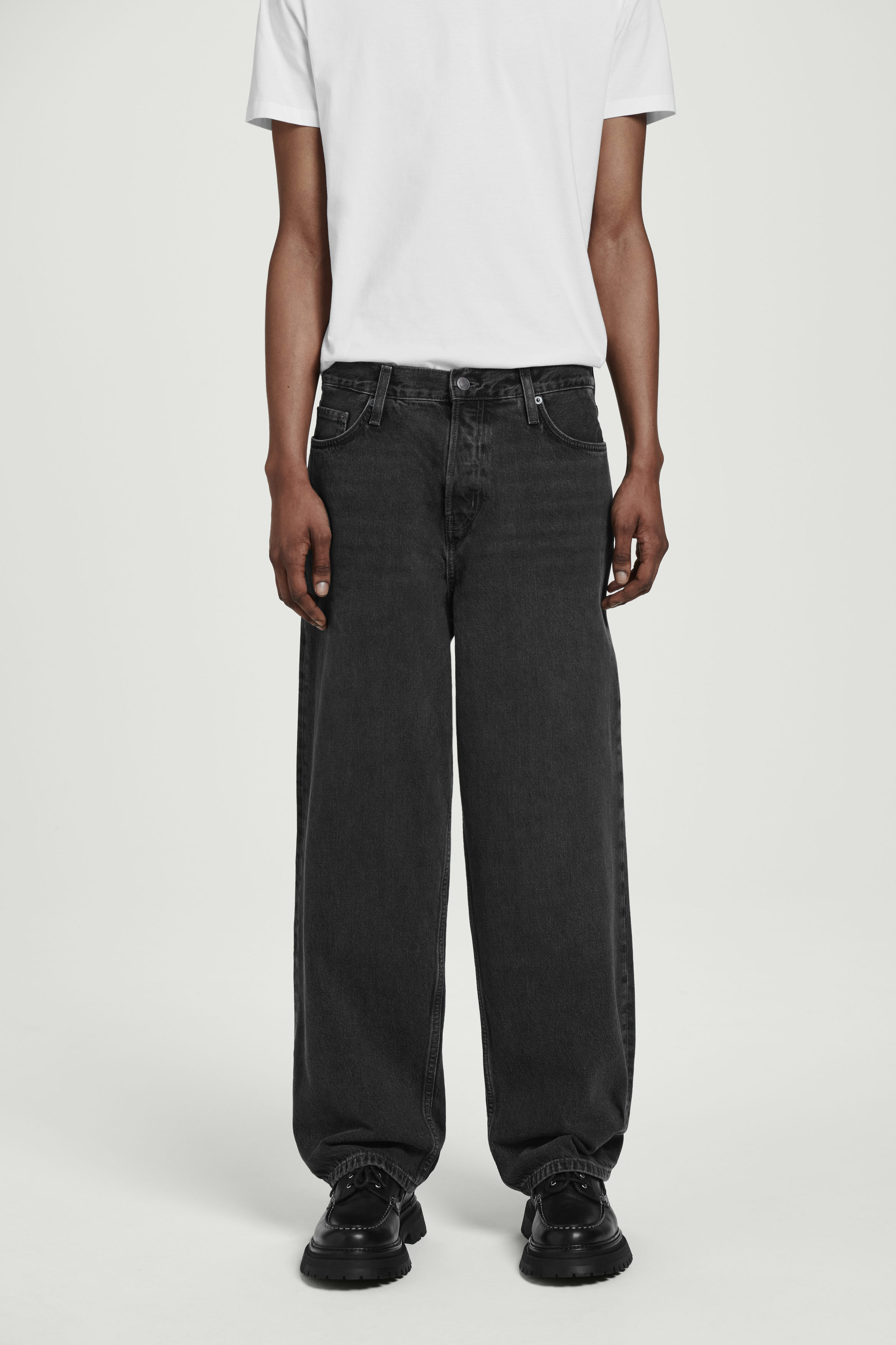 Jeansen Rider är designade med subtila referenser till utility. De är tillverkade av 13 oz (386 g) denim av ekologisk och återvunnen bomull i en mångsidig, svart nyans. De har en ledig passform med raka ben samt detaljsömmar på bakfickorna inspirerade av klassisk workwear.