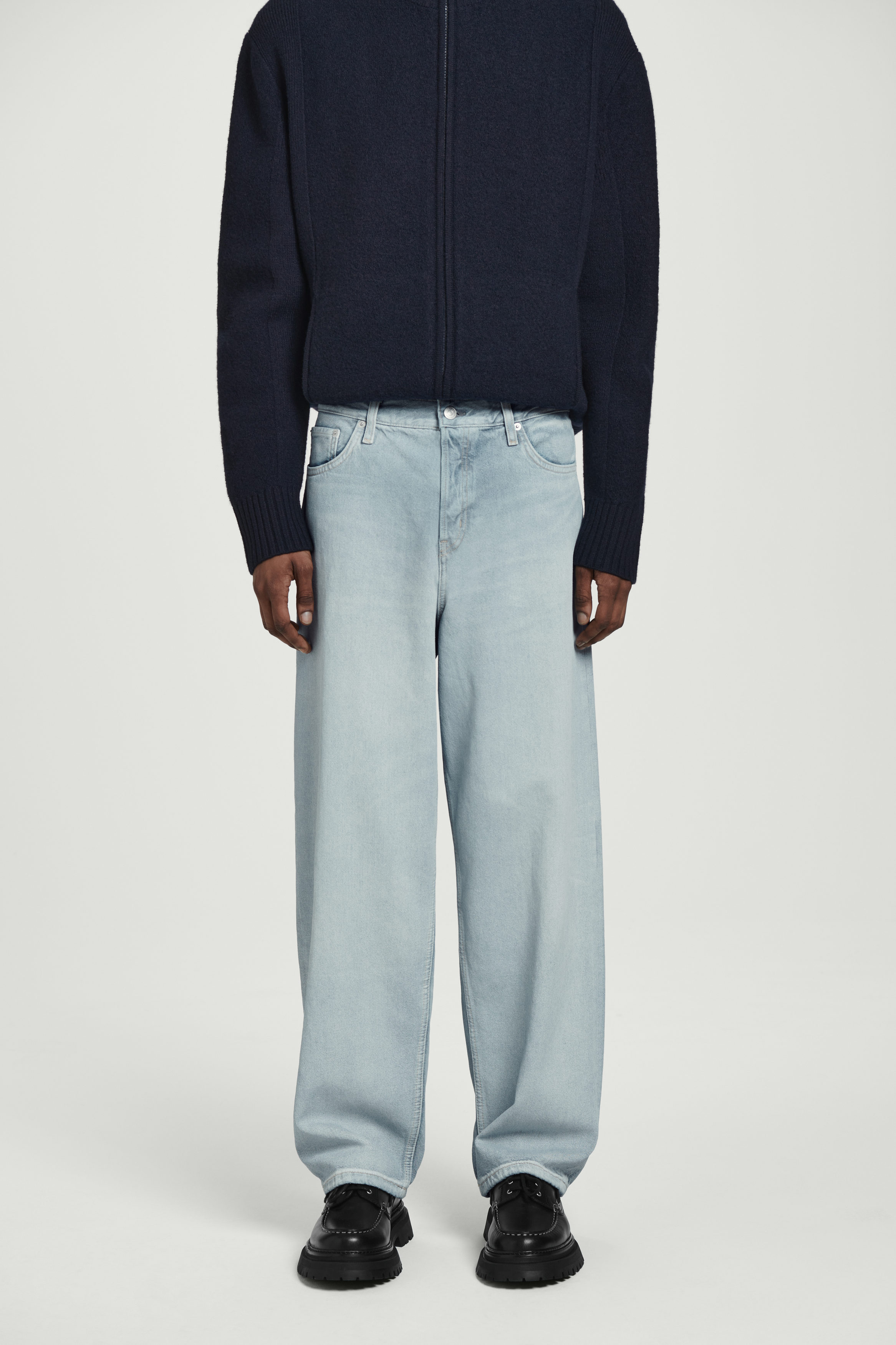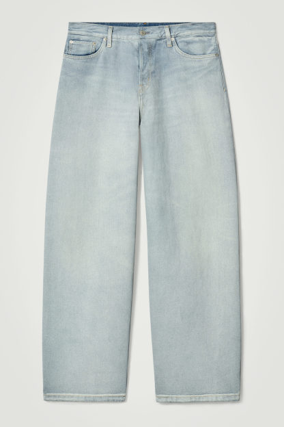 Jeansen Rider är designade med subtila referenser till utility. De är tillverkade av 13 oz (386 g) denim av ekologisk och återvunnen bomull i en modern, ljusblå tvätt med en subtil beläggning. De har en ledig passform med raka ben samt detaljsömmar på bakfickorna inspirerade av klassisk workwear.