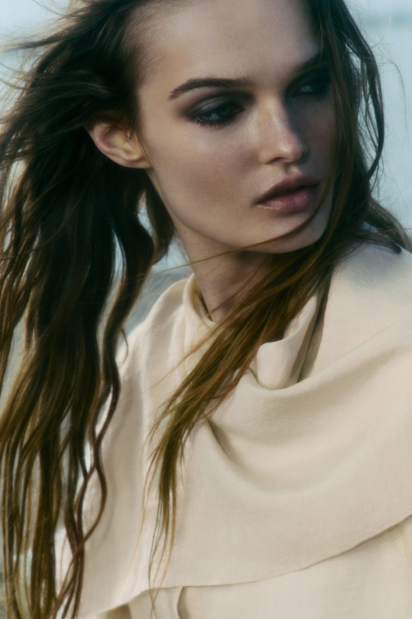 Den här blusen är tillverkad av crepe i en blandning med mullbärssiden och har ett lätt känsla som framhävs av den lediga silhuetten. Blusen är konstruerad med en snedskuren scarfdetalj som du kan drapera runt halsen eller över axeln.