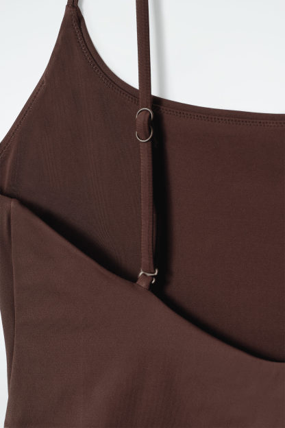 This refined swimsuit lends itself to days spent by the water. It's rendered in a rich chocolate-brown tone and designed with a scooped neckline, low back and adjustable shoulder straps for a perfect fit.