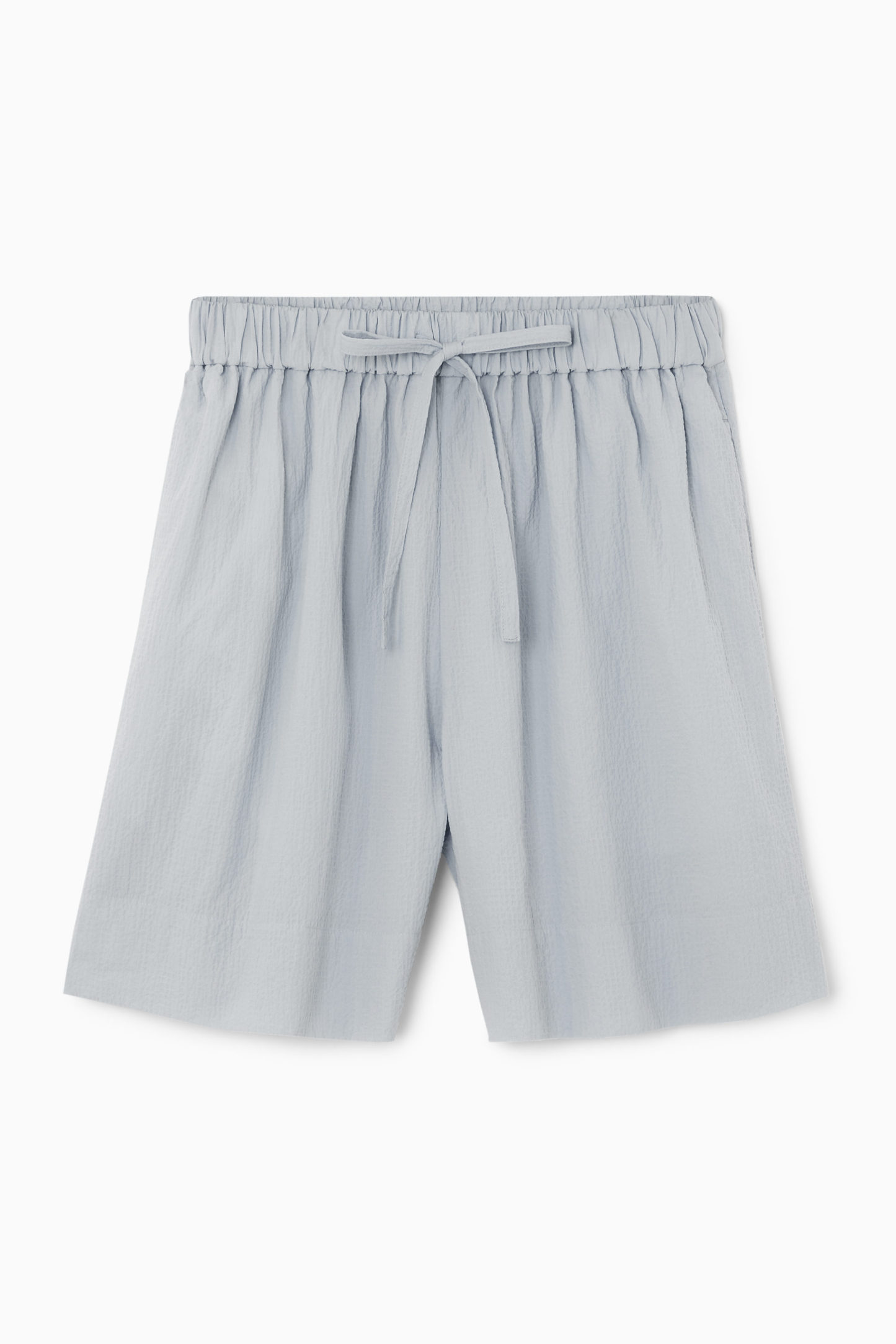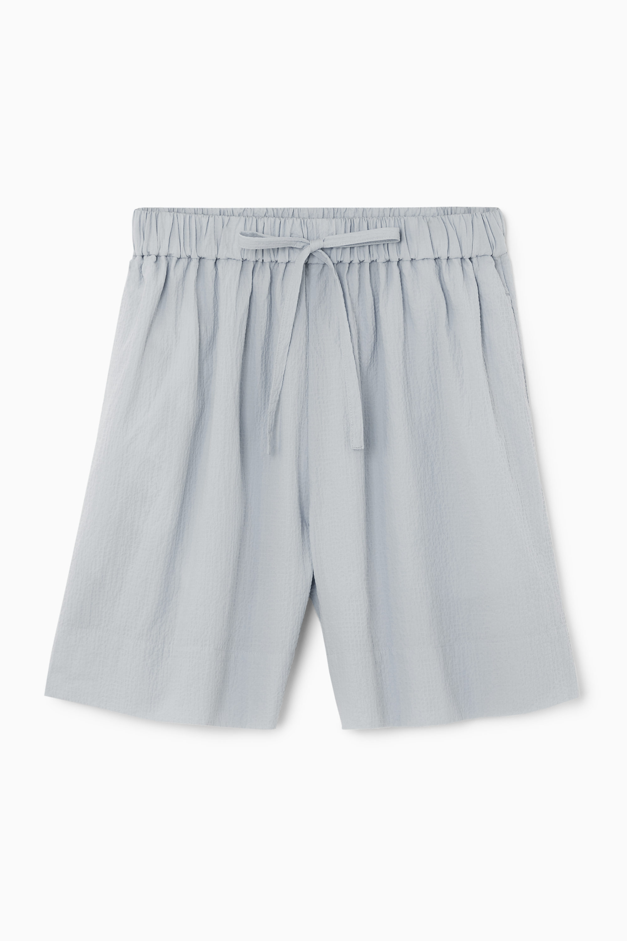 De här shortsen i seersucker är gjorda av luftig bomull med lite stretch och en krinklad struktur som passar särskilt bra under heta sommardagar. Linningen med stretch är försedd med dragsko för anpassning av passformen och ger benen en naturlig rynkning.