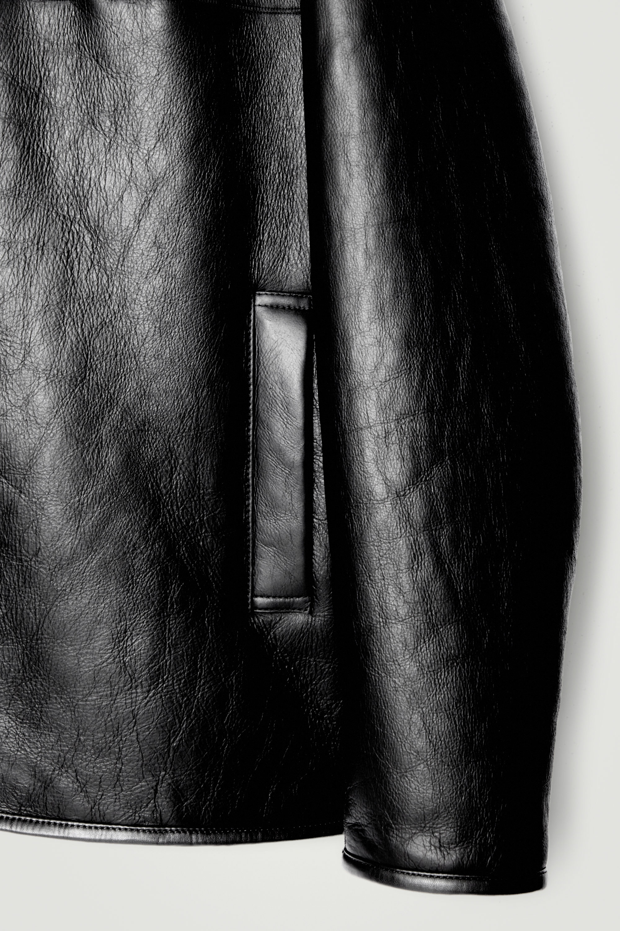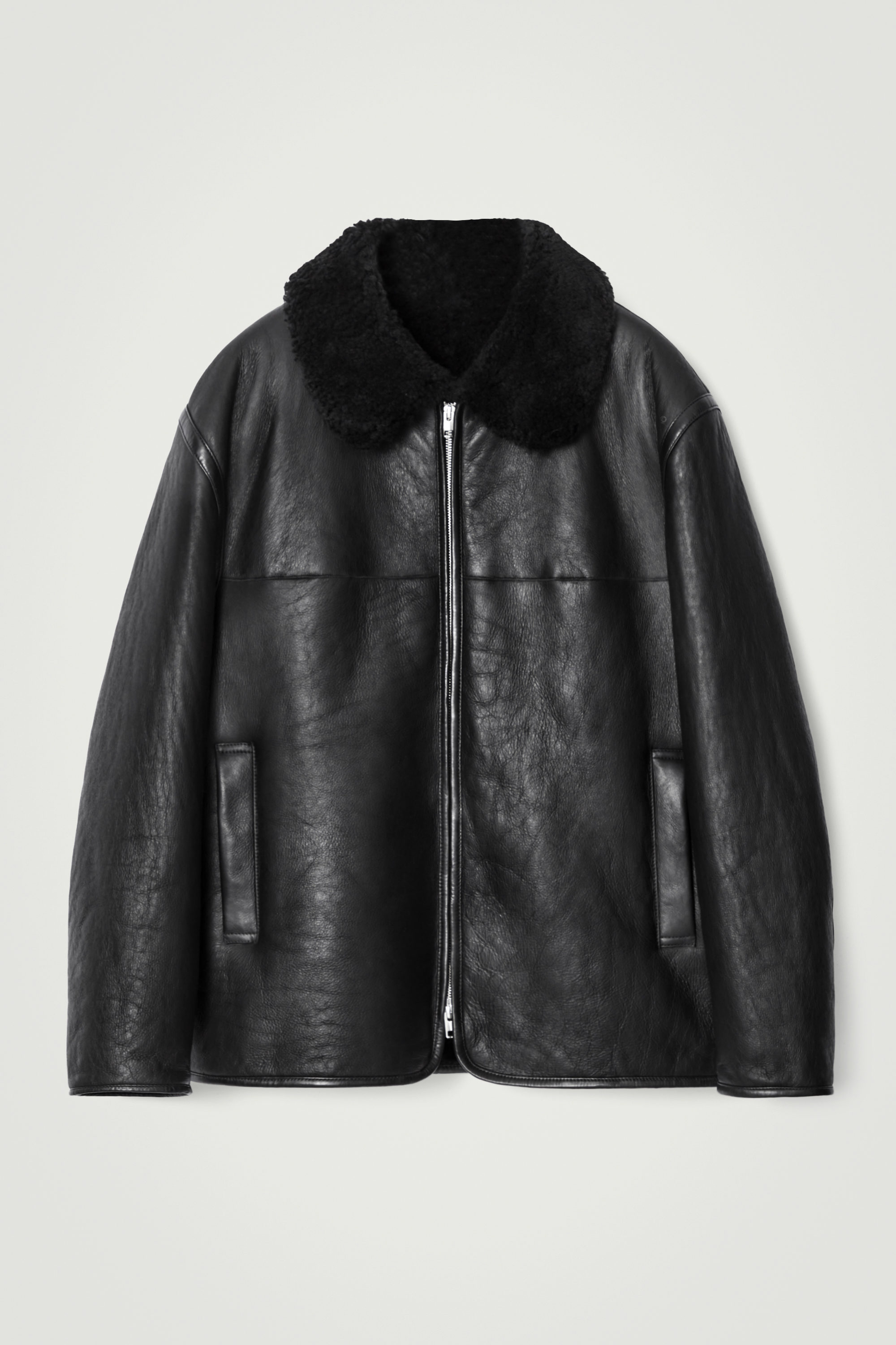 Den här säsongen moderniserar vårt designteam en garderobsklassiker: Aviator-jackan i läder. Denna version är tillverkad i smidigt, kromfritt läder med en lyxigt mjuk insida och krage i shearling. Den avslappnade formen och dubbla dragkedjan gör den enkel att bära som ett extra lager.
