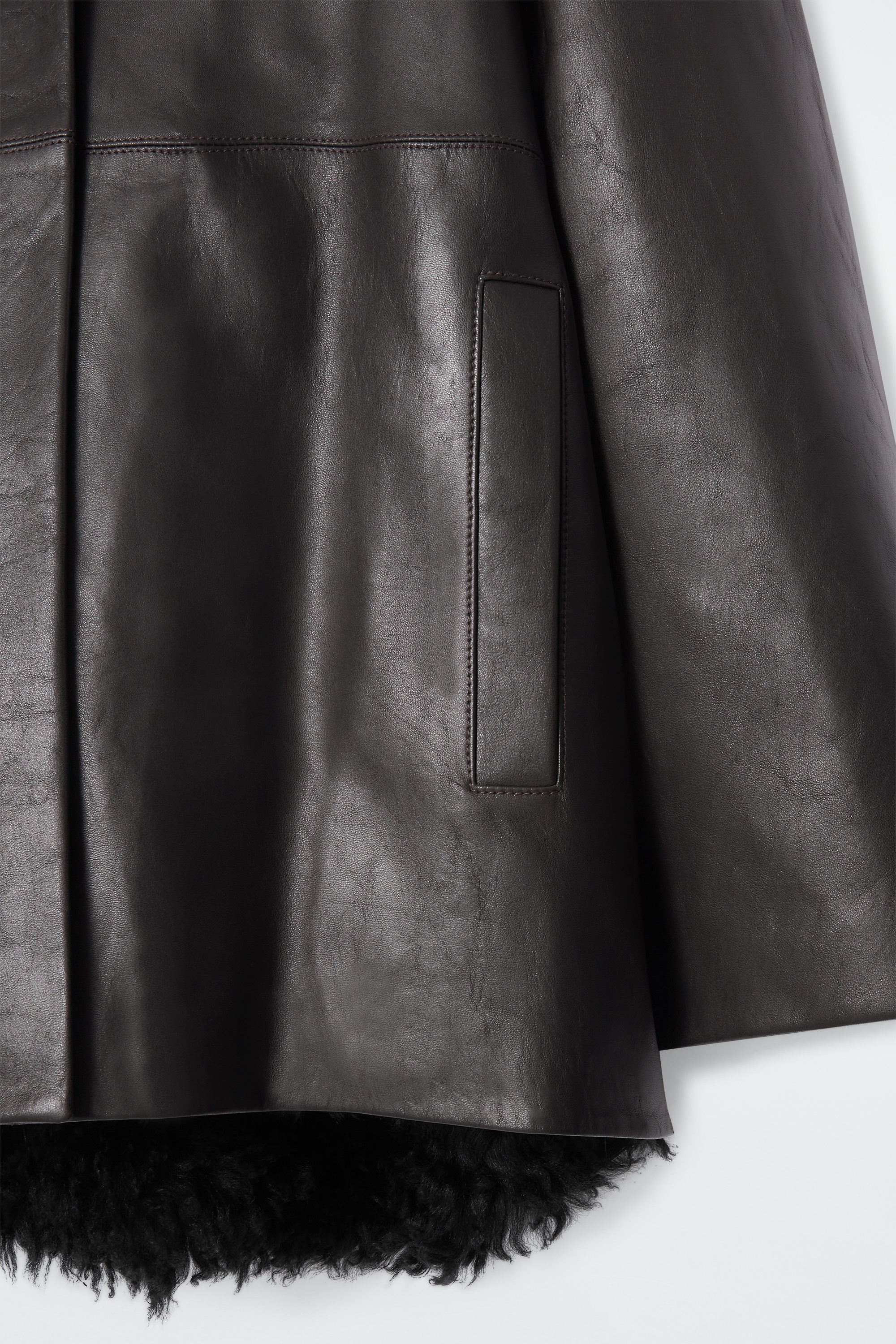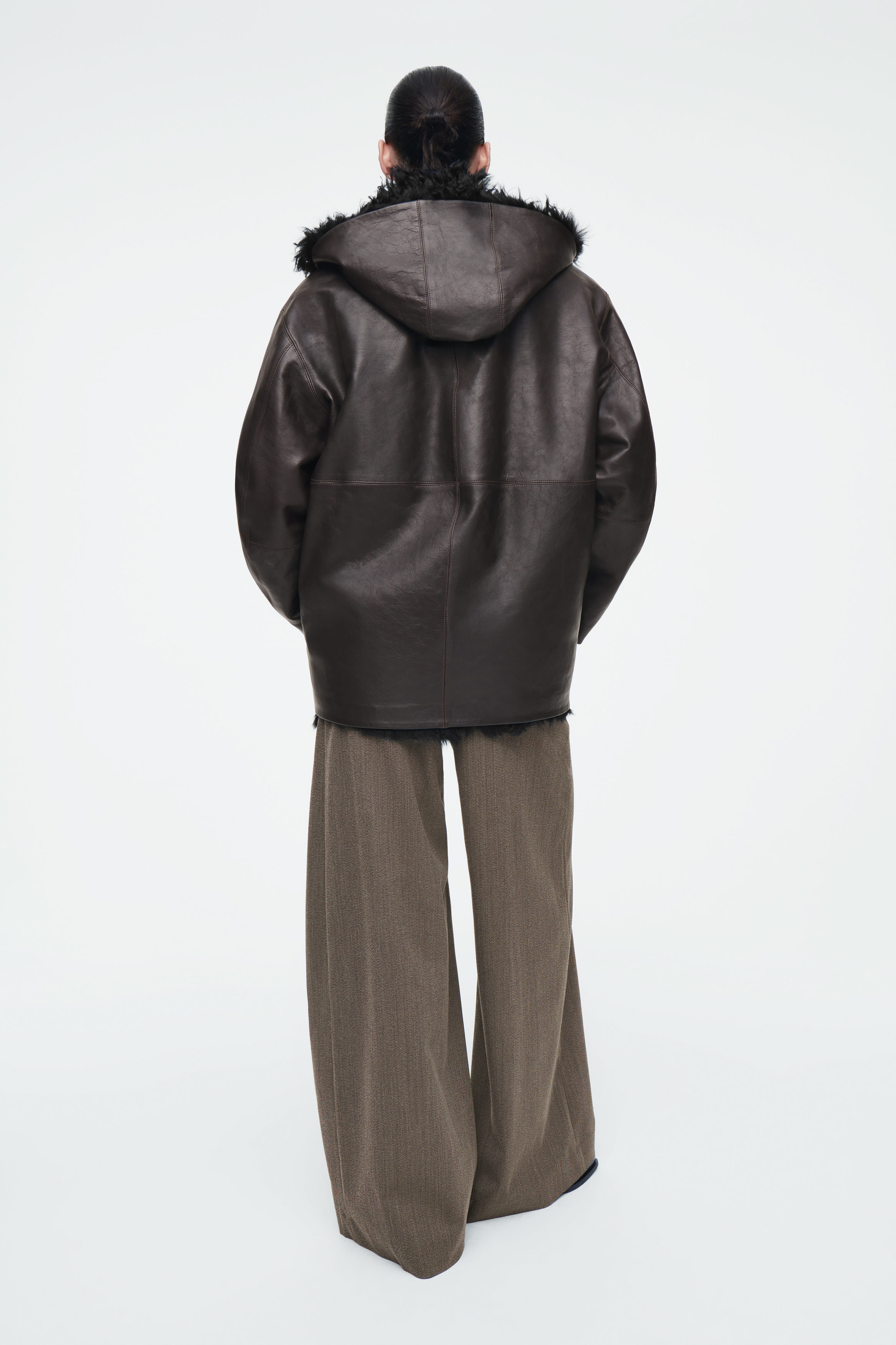 Denna kreation är en moderniserad version av en anrik garderobsikon: Shearlingjackan. Den är tillverkad i nappa av högsta kvalitet som får en unik patina med åren. Jackan har en djup espressonyans som uppnåtts genom en kromfri färgningsprocess och den lyxigt mjuka insidan i shearling kan tas loss för att skapa ett dynamiskt uttryck – använd huvjackan för sig eller styla fodret som en väst.