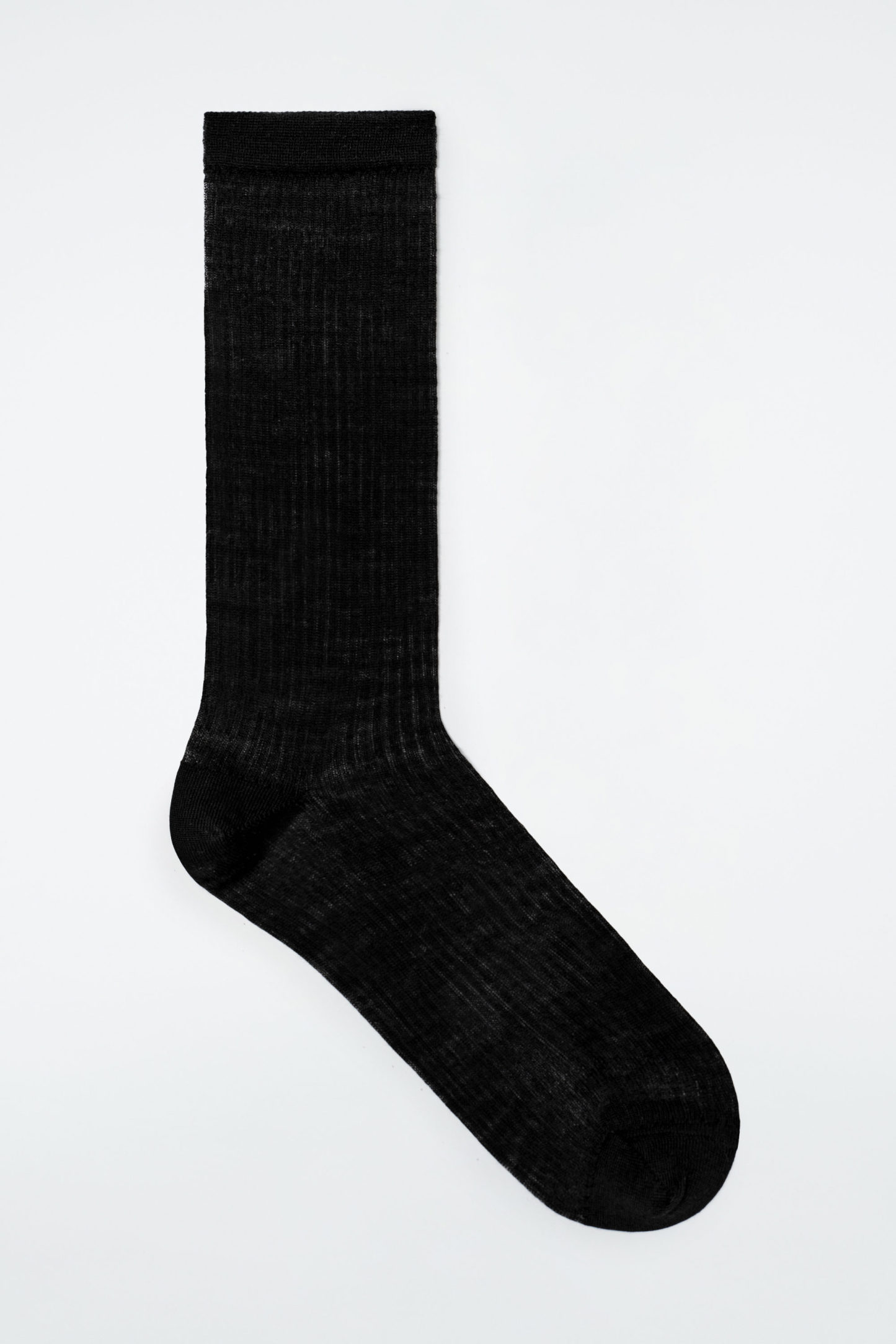 Dessa skira strumpor är fint ribbstickade i en RWS-ullblandning med en klassisk, svart nyans samt har förstärkt häl och tå. Styla dem med Mary-Janes eller loafers.