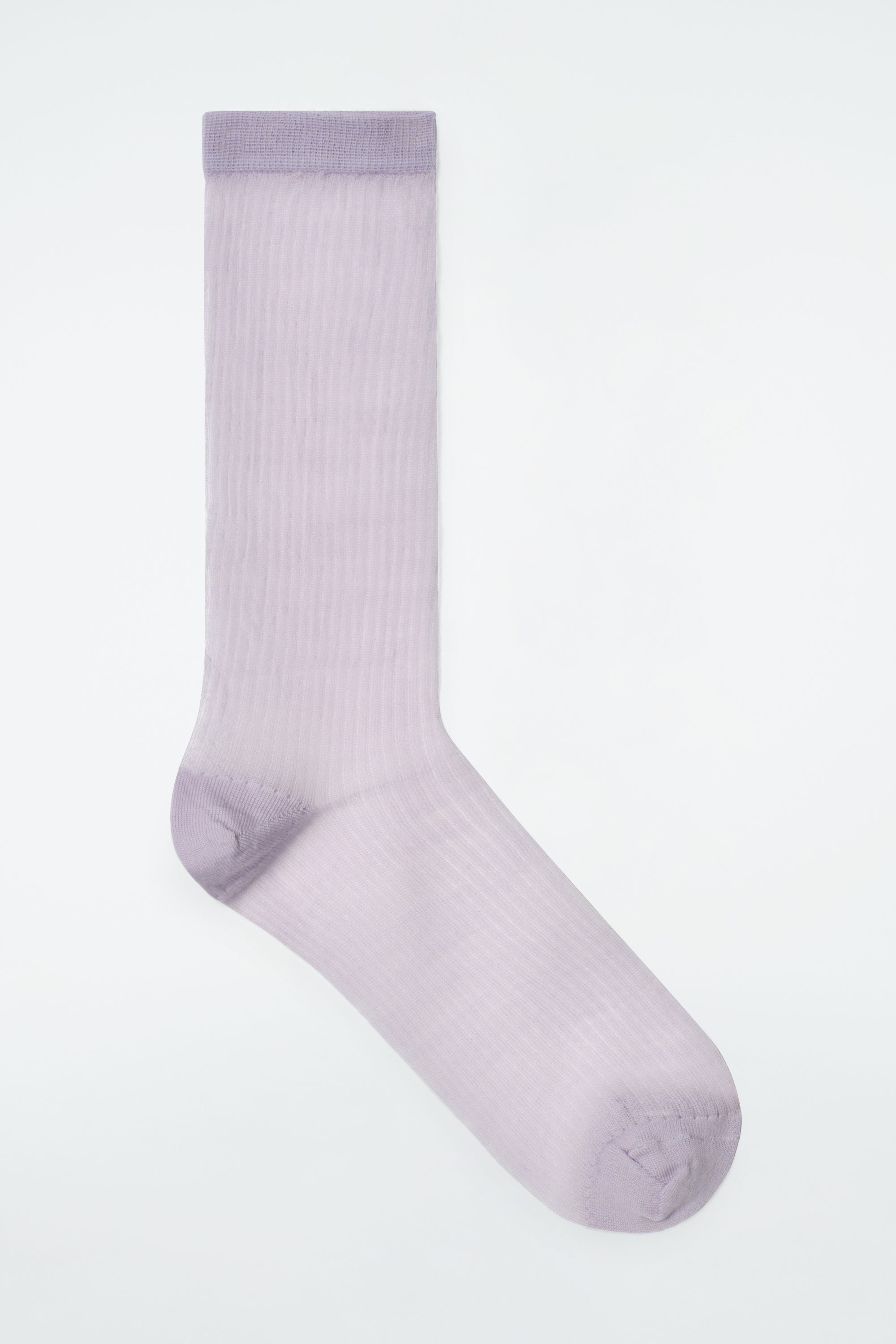 Dessa skira strumpor är fint ribbstickade i en RWS-ullblandning med en dovt syrenlila nyans samt har förstärkt häl och tå. Styla dem med Mary-Janes eller loafers.