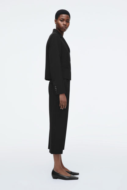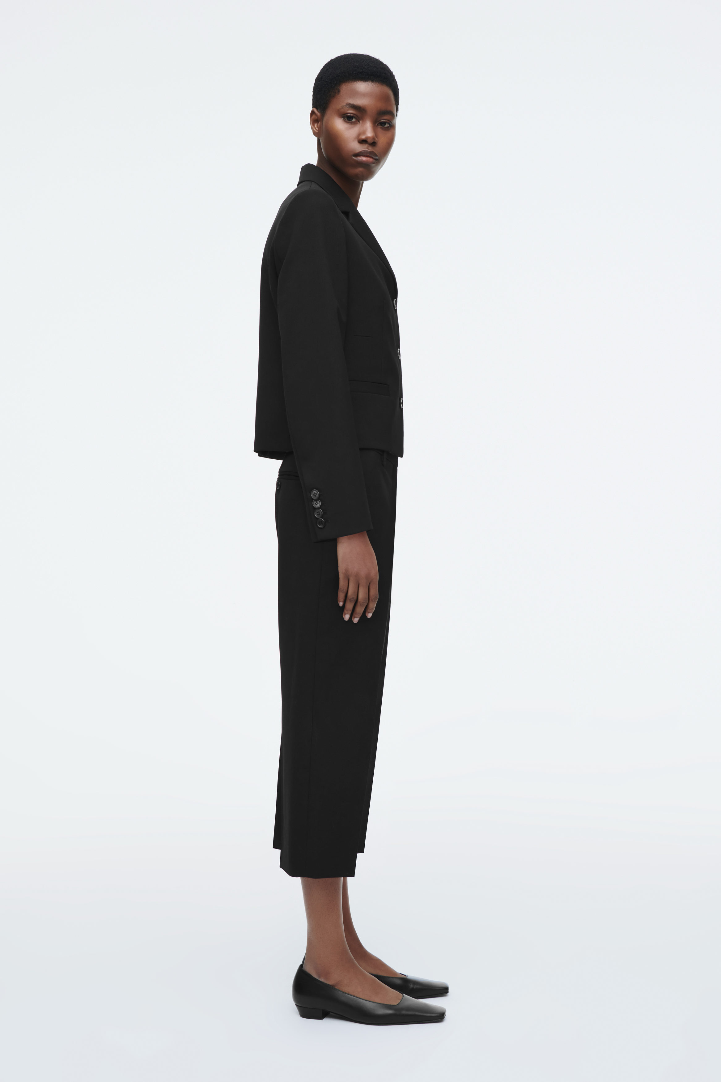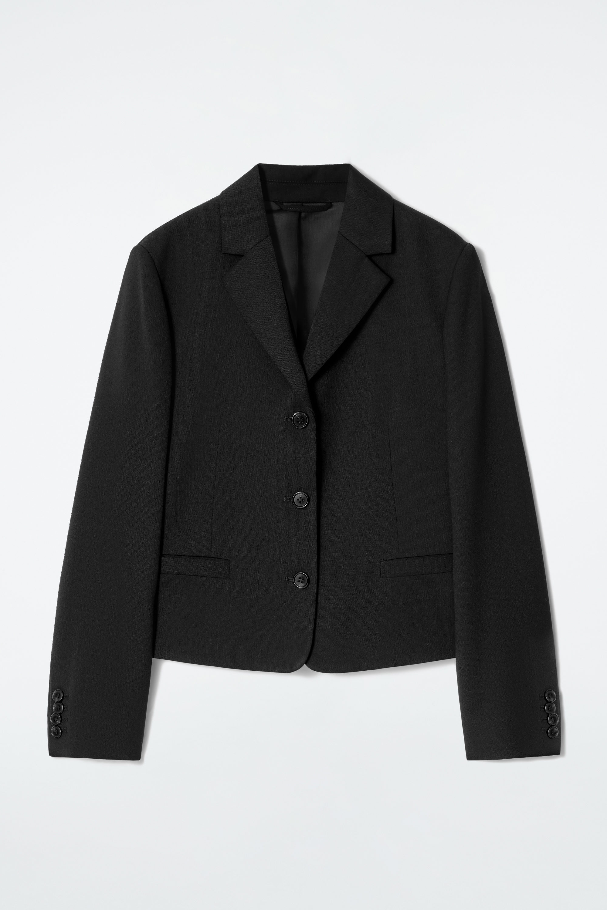 The cthtos tailoring collection offers a considered take on formality. Crafted from a premium wool blend, this single-breasted blazer is cut in a short, shrunken silhouette and works to accentuate the waistline of your jeans or trousers. It has lightly padded shoulders, welt pockets and a split at the back for movement.