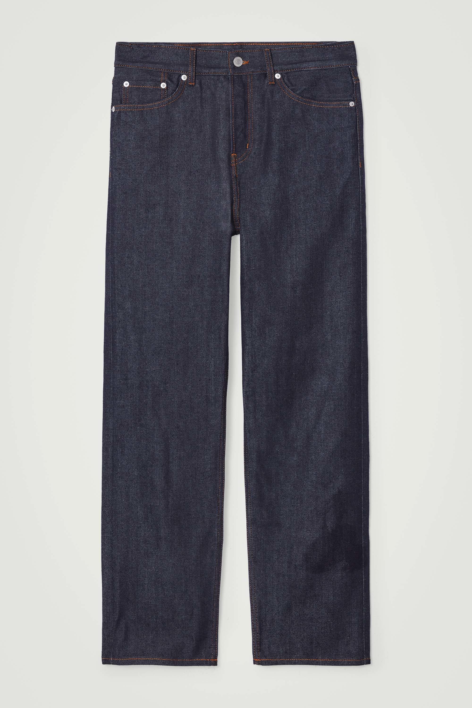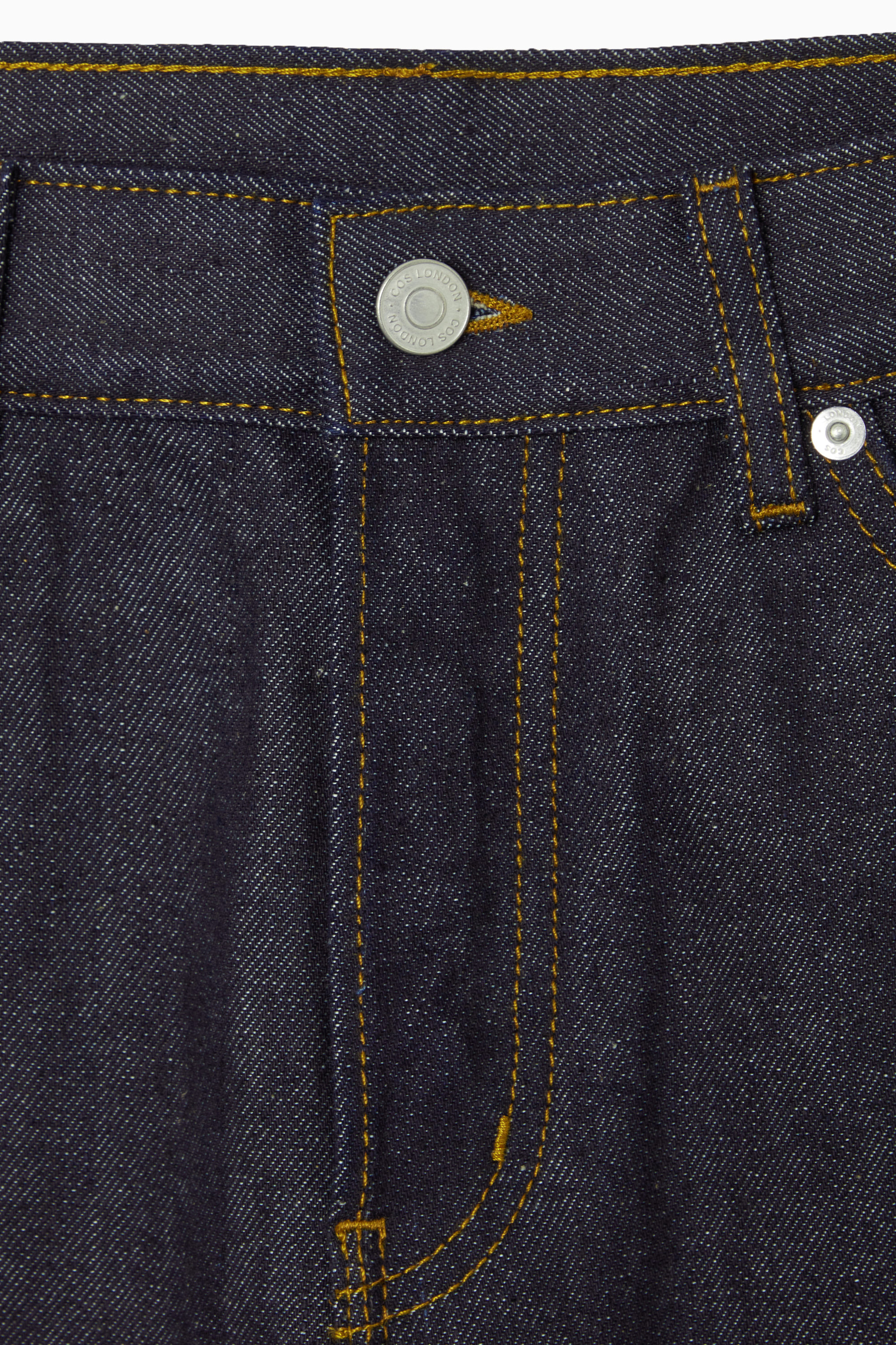 Här har du dina nya älsklingsjeans! De är sydda av rådenim som är både styv och tung, men ju mer du använder jeansen desto mjukare och ljusare blir de. De formar sig exakt efter din kroppsform och ett plagg som är unikt för dig. Stilren modell med raka ben där det exklusiva denimtygets selvedgekanter syns om benen viks upp. Jeansen passar till hela garderoben, men ingen outfit är mer klassisk än med den matchande jackan.