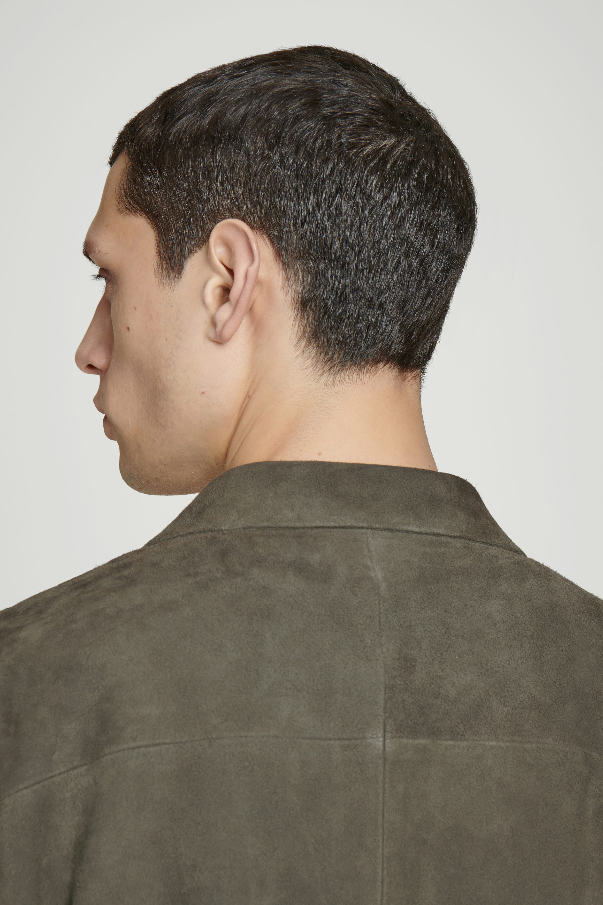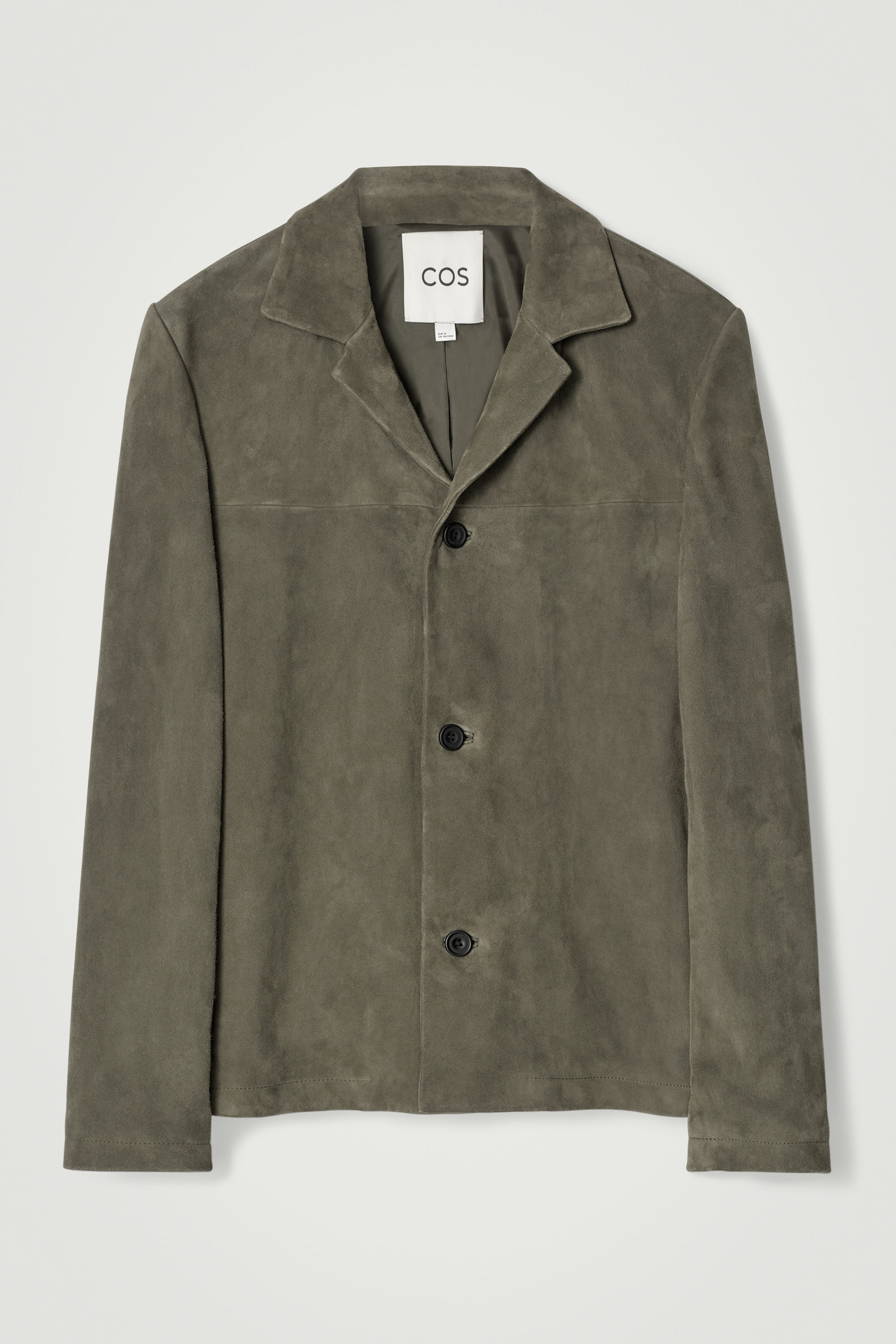 Detta eleganta plagg balanserar mellan att vara en skjorta och en jacka, vilket gör det perfekt för övergångsmånaderna. Designen är tillverkad av mjuk mocka i en mörk khakinyans, har en bowlingkrage och tre färgmatchade knappar fram. Bär den öppen över stickade plagg eller med en enkel T-shirt under.