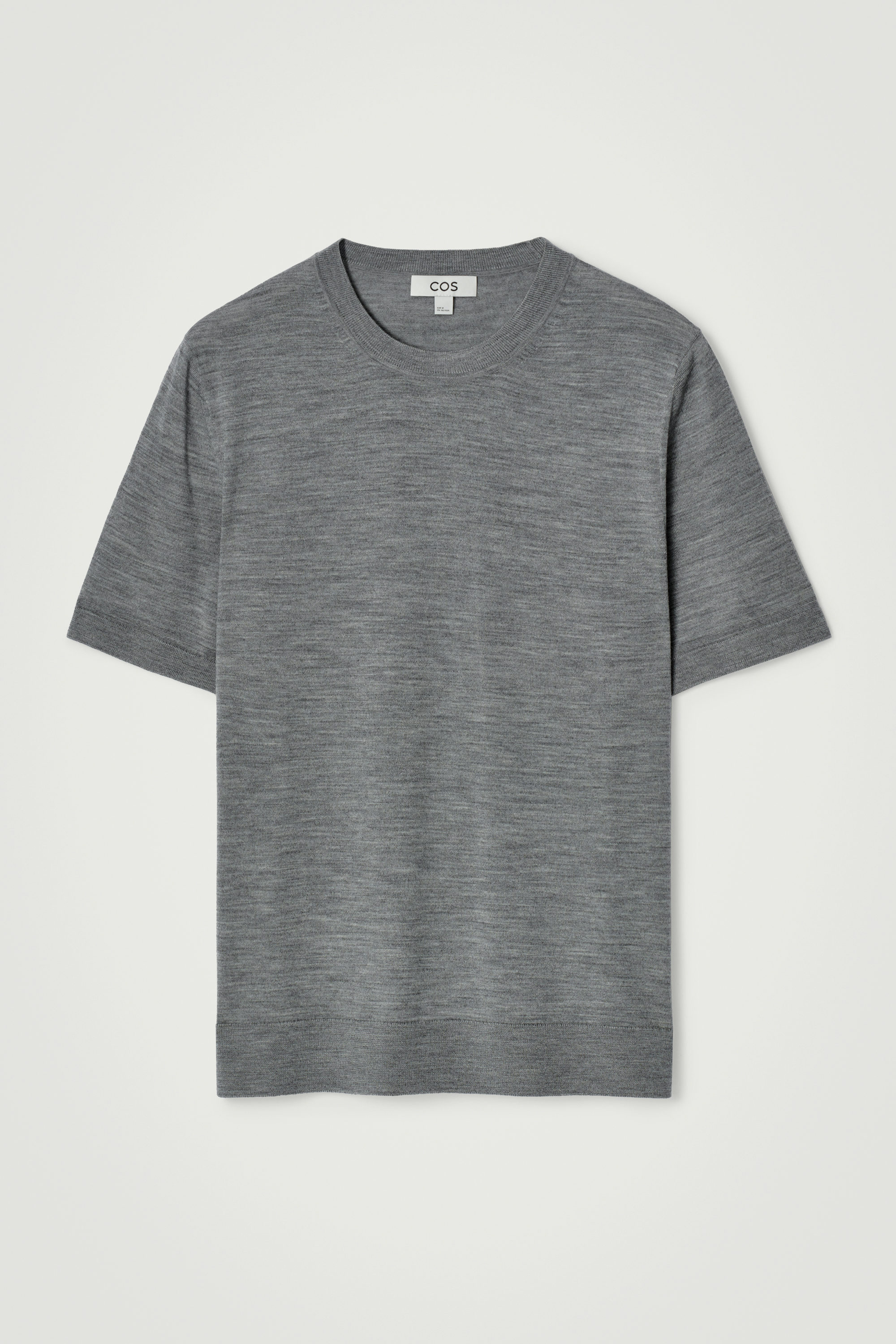 cthtos designteam är experter på att designa perfekta basplagg. Denna t-shirt är stickad av premium merinoull i en klassisk, gråmelerad nyans. Designen har franska sömmar på axlarna och ribbade kanter som ser till att den håller formen. Detta kommer garanterat att bli en ny favorit, säsong efter säsong.
