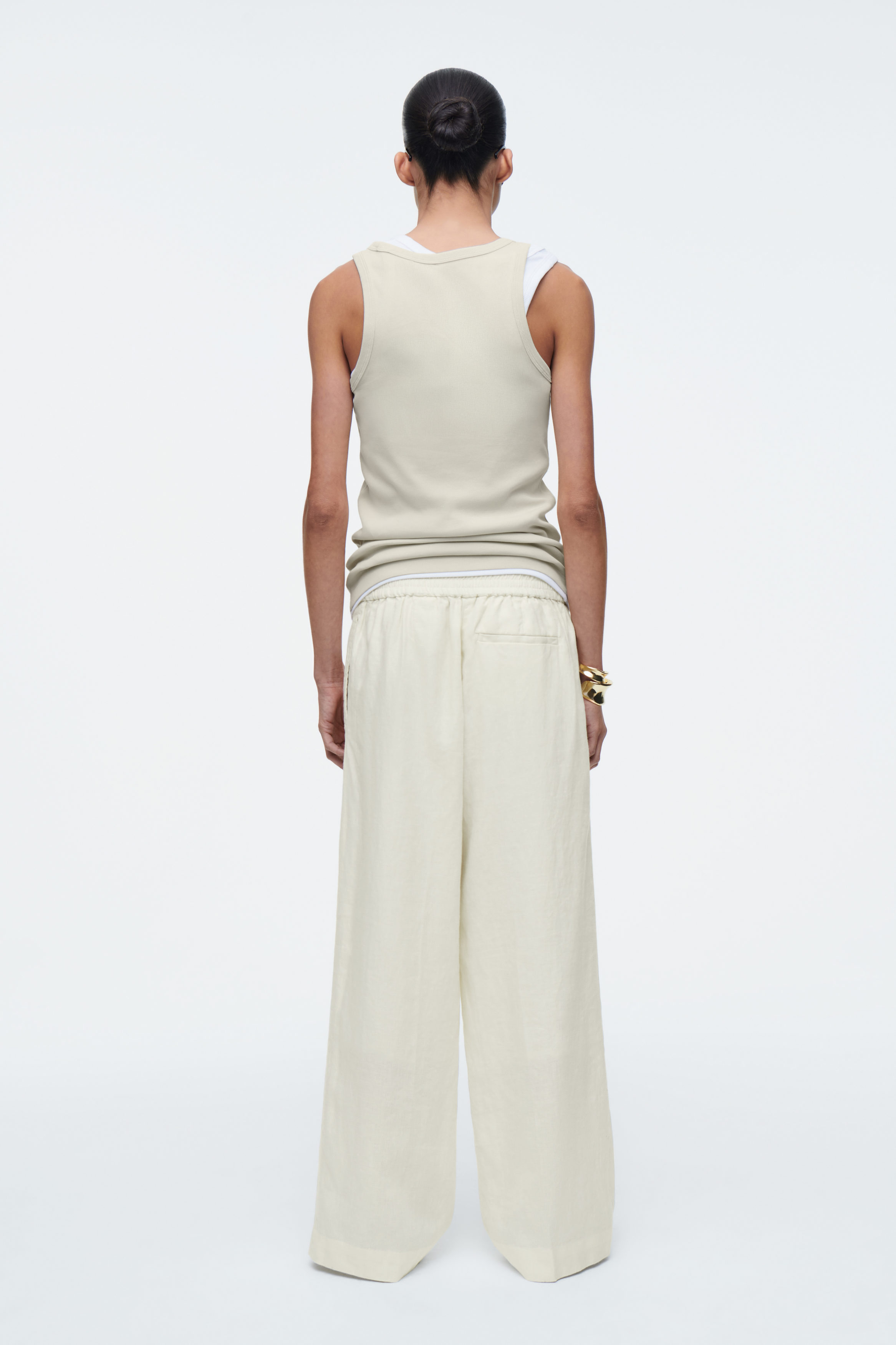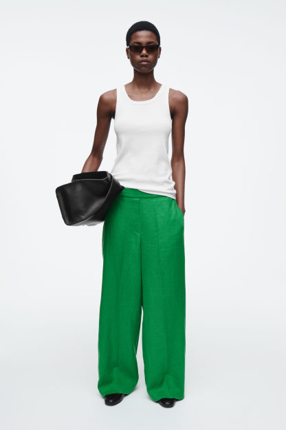 SKRÄDDADE LINNEBYXOR MED RAKA BEN