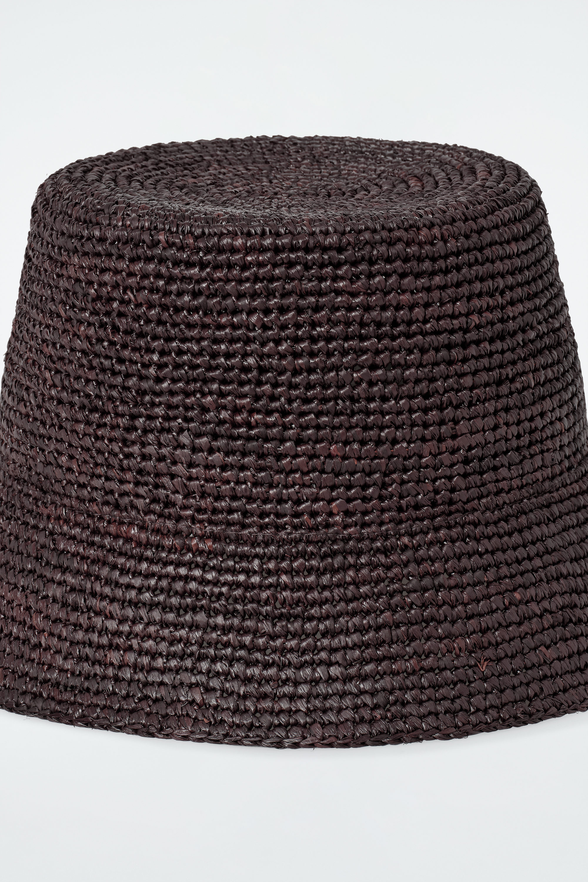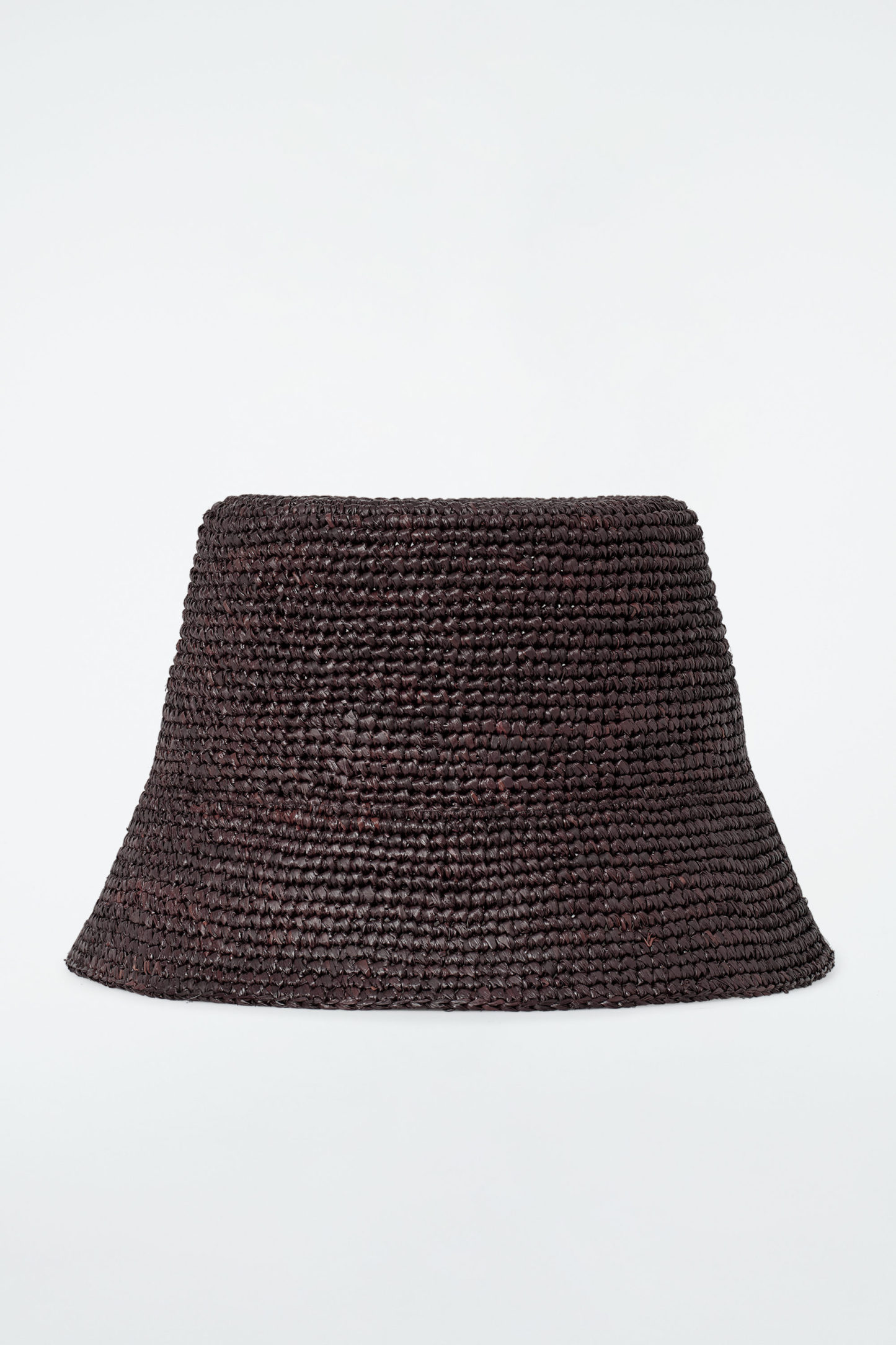 Denna moderna fiskarhatt är vävd i strå, har en lätt rundad form och rak, platt ovansida. Den erbjuds i en djupt chokladbrun nyans för enkel styling.