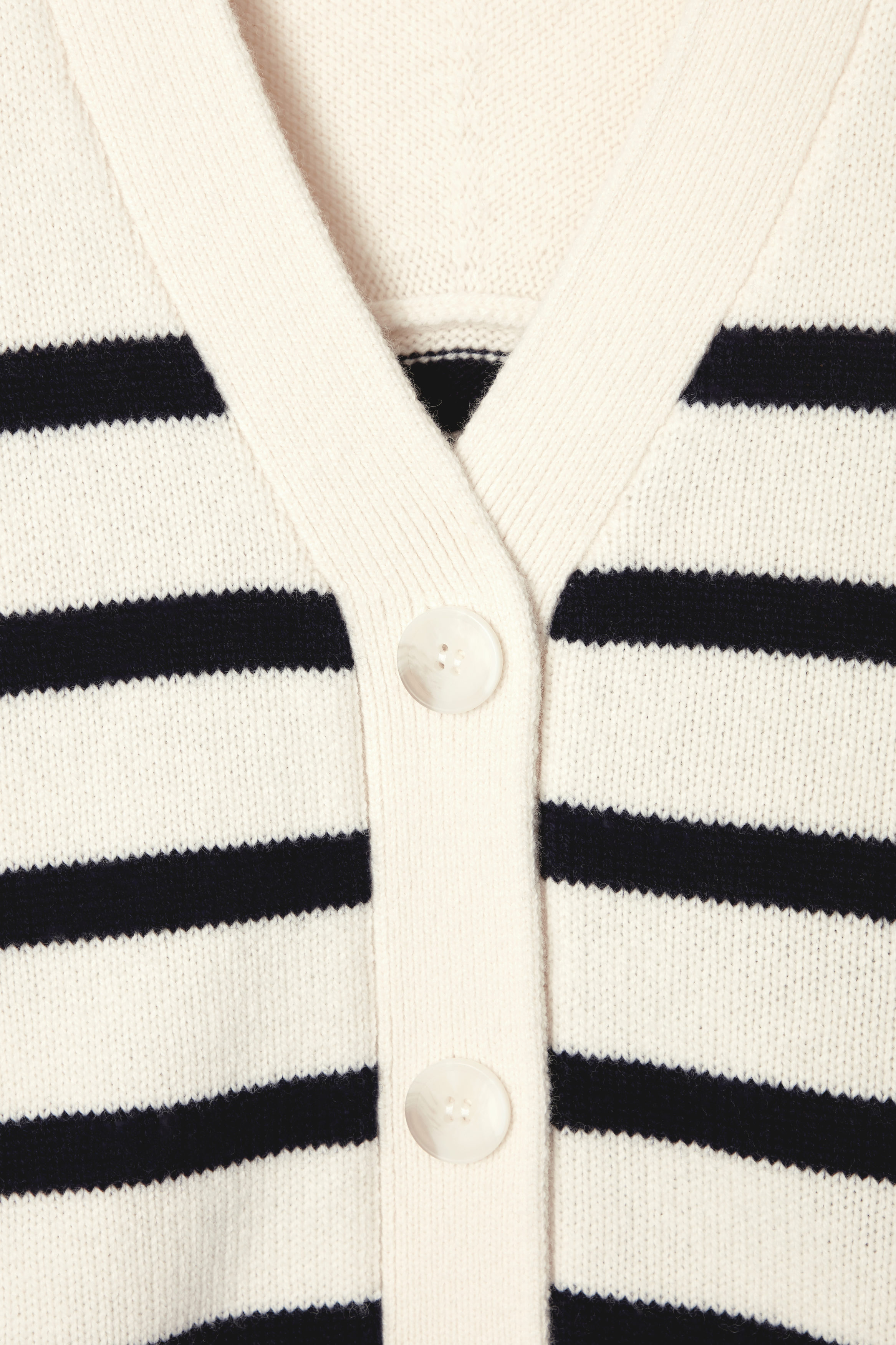 Denna klassiska, stickade kofta i 100% merinoull kommer att bli en grundsten i din övergångsgarderob. Den är dekorerad med kontrastränder, har en v-ringning, utanpåliggande fickor fram och en bred, ribbad fåll.