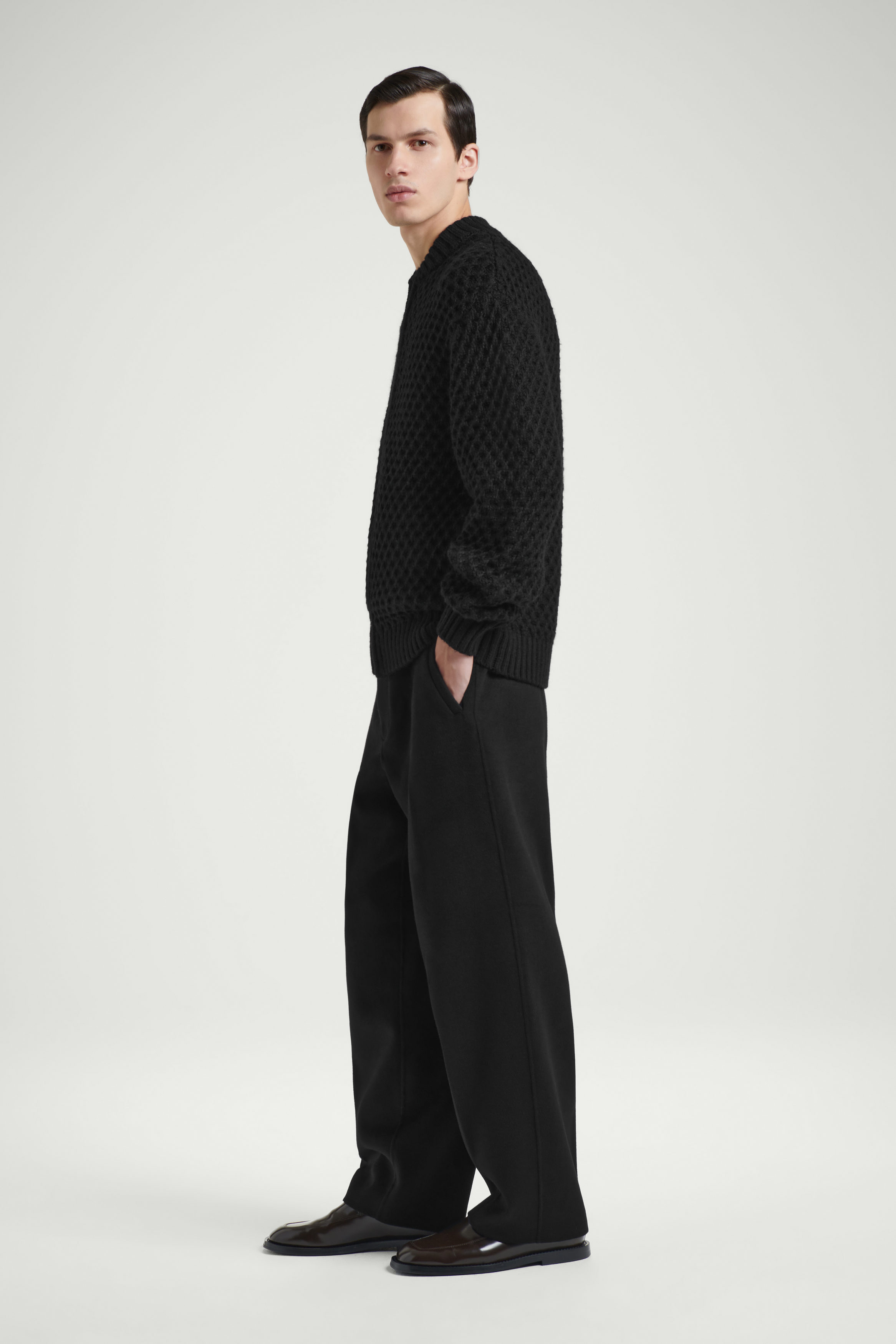 Material: 95 % RWS-ull, 5 % alpacka. Fickfoder: 100 % merinoull. Exklusive detaljer/Endast kemtvätt