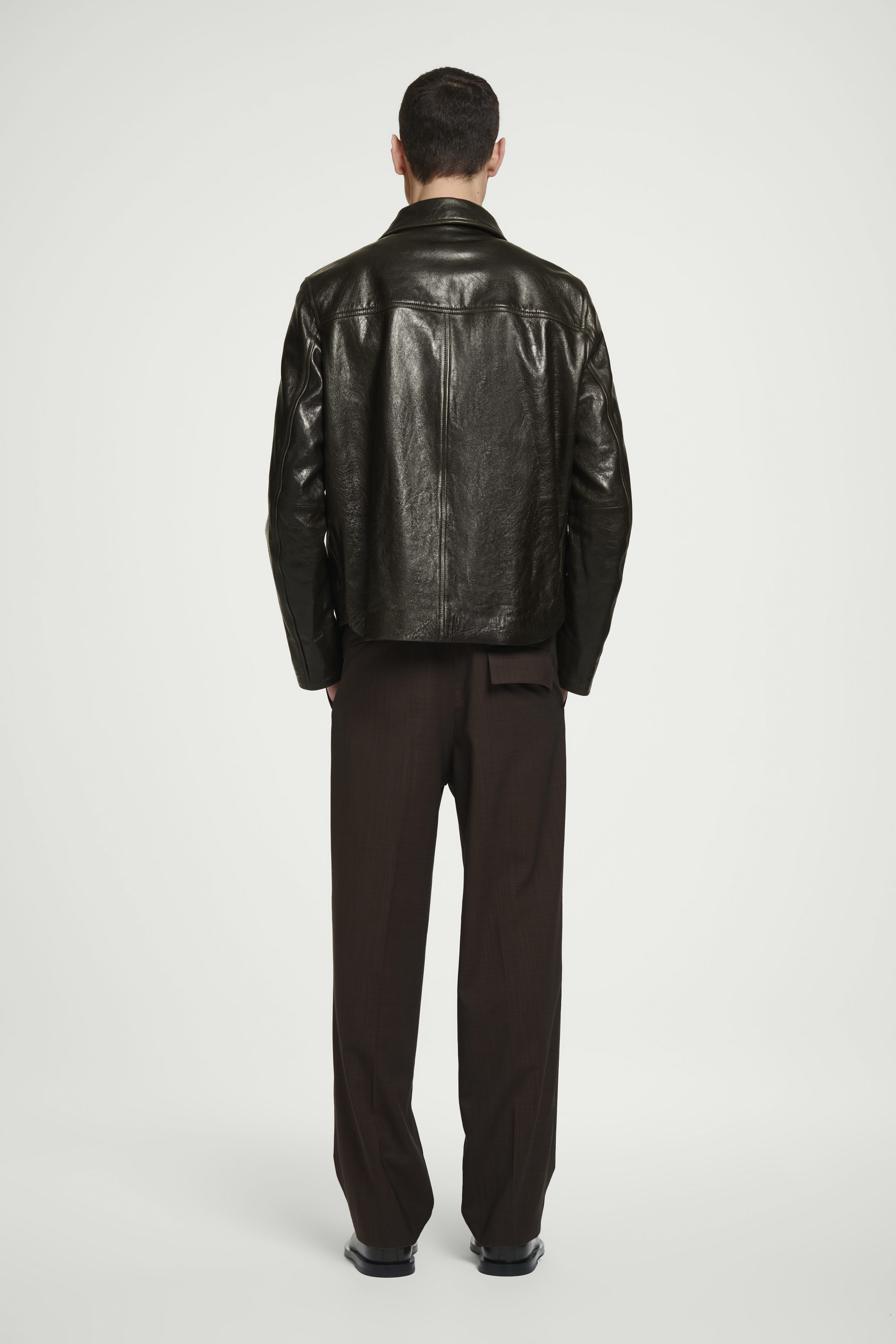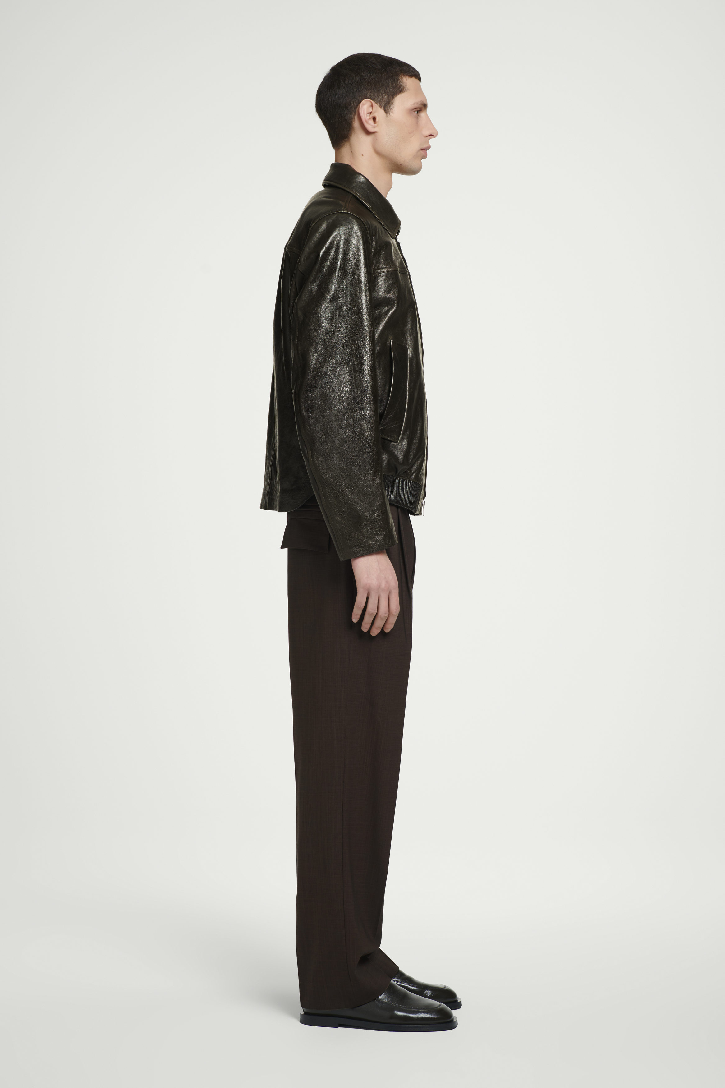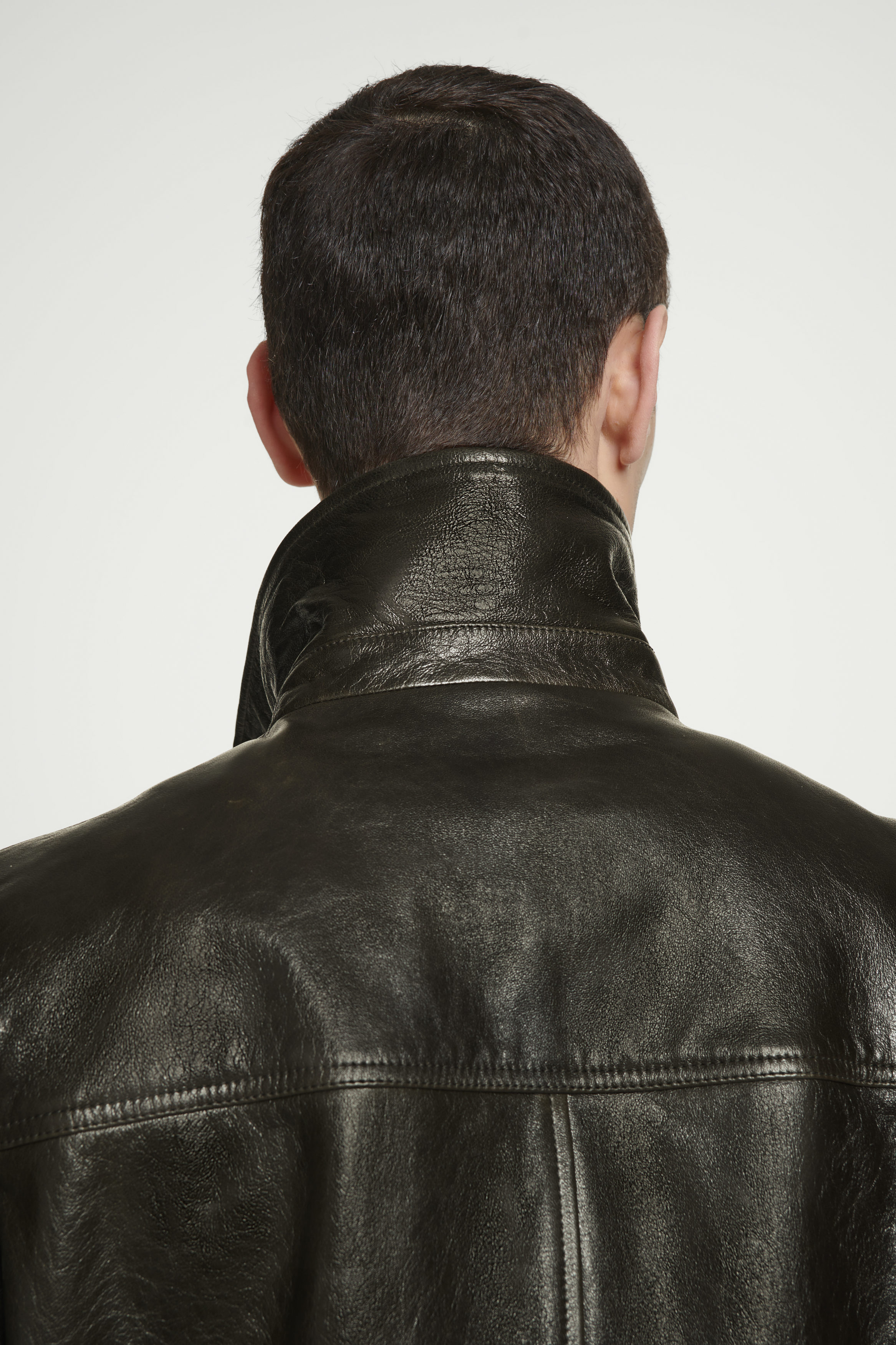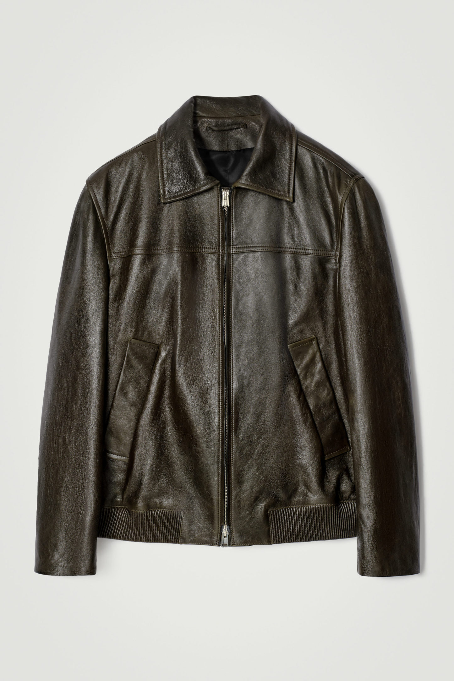 cthtos Runway-kollektion för SS25 bygger vidare på våra designkoder för hållbarhet och exceptionellt hantverk. den här säsongen utforskar designteamet en tyst evolution för signaturplagg som den här skinnjackan. Den är gjord av mjukt, kromfritt lammskinn i en intensiv, djup khakinyans som med tiden får en unik patina. Jackan har en ribbstickad nederkant i läder, dragkedja som kan justeras från båda håll och en hög stormflik baktill.