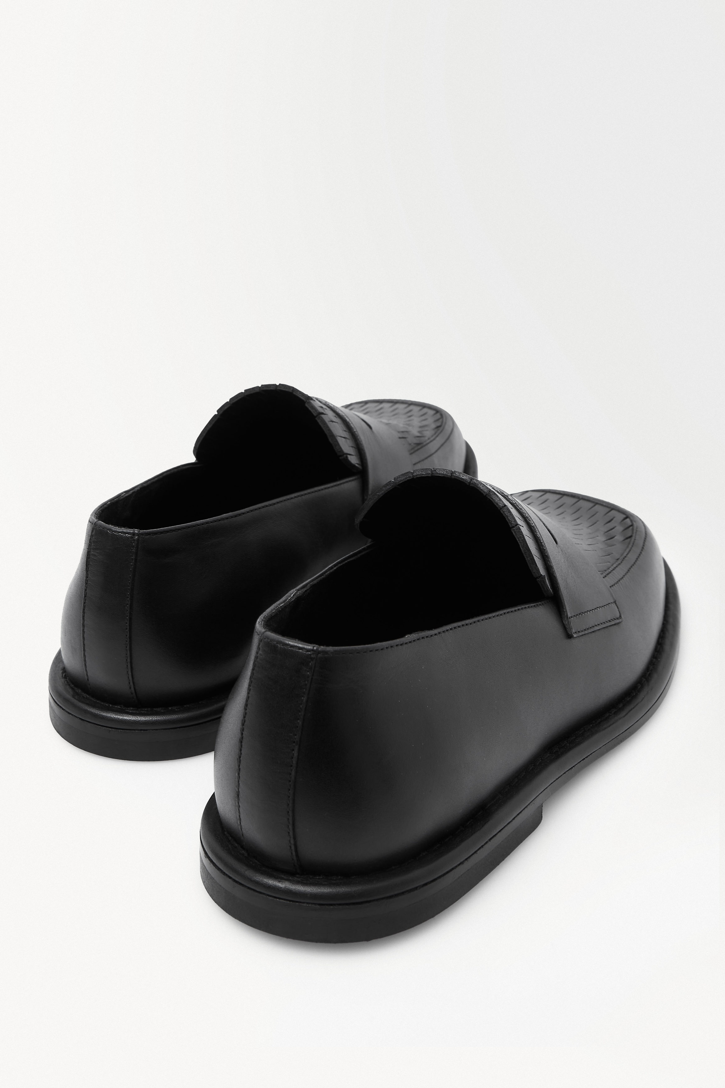 Det här är en nytolkning av pennyloafers som väcker uppmärksamhet med dekorativa utskurna detaljer och rundad form.