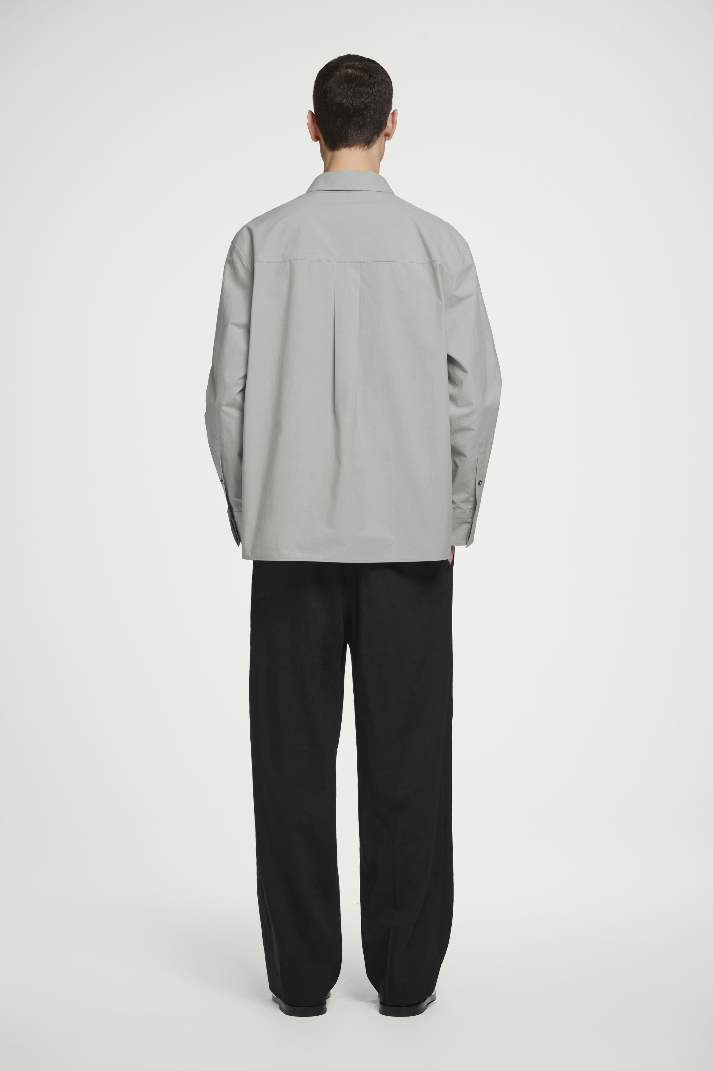 cthtos Runway-kollektion för SS25 bygger vidare på våra designkoder för hållbarhet och exceptionellt hantverk. En skickligt skräddad skjorta utgör ett kännetecken för en väl sammansatt garderob. Den här varianten i dimgrått är gjord av poplin i ekologisk bomull som valts för sin stilrena look och mjuka känsla. Snittet är klassiskt med rak nederkant, pärlemorknappar och en upphängningsögla i grosgrain – en signaturdetalj för kapselkollektionen.