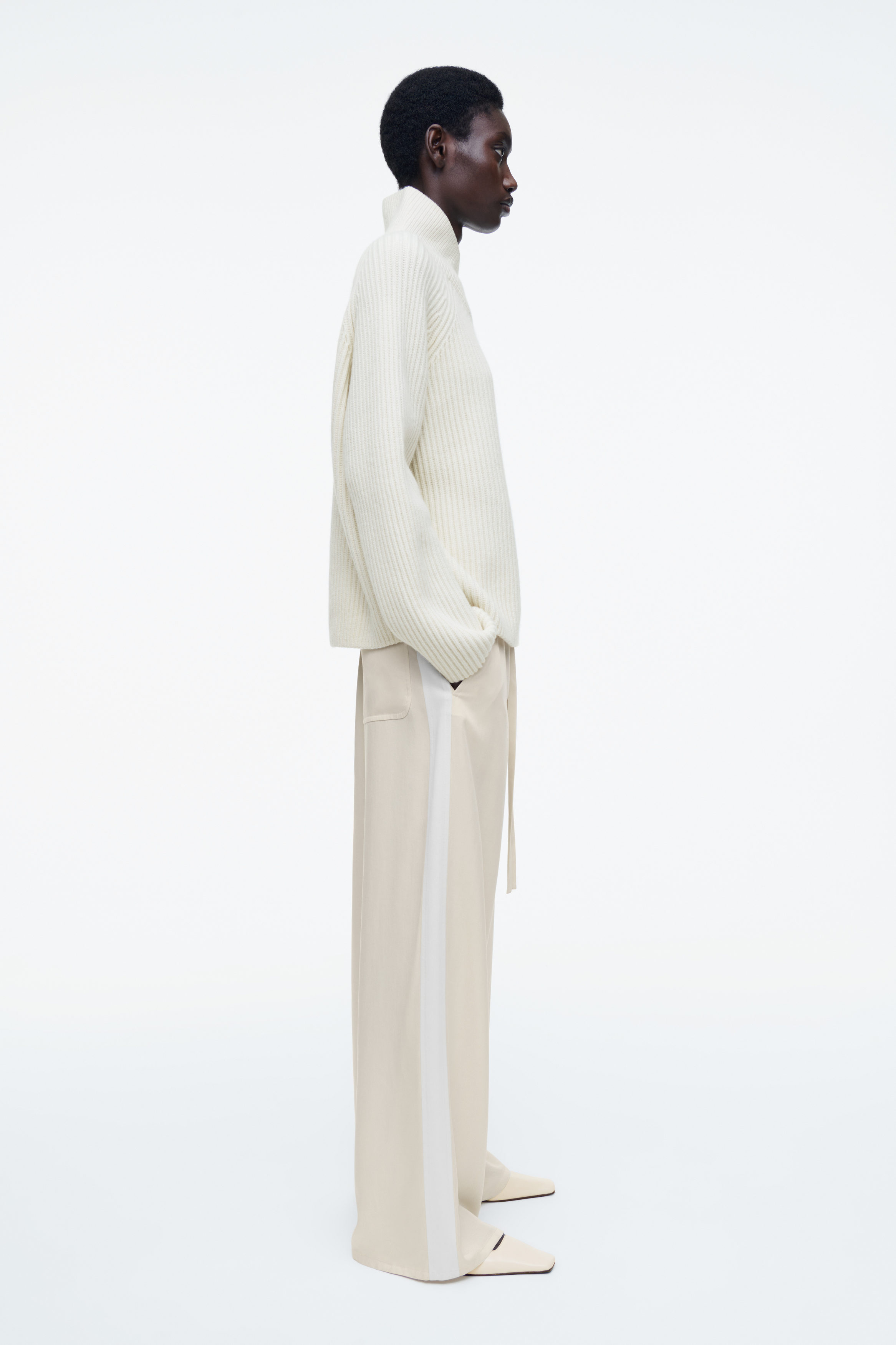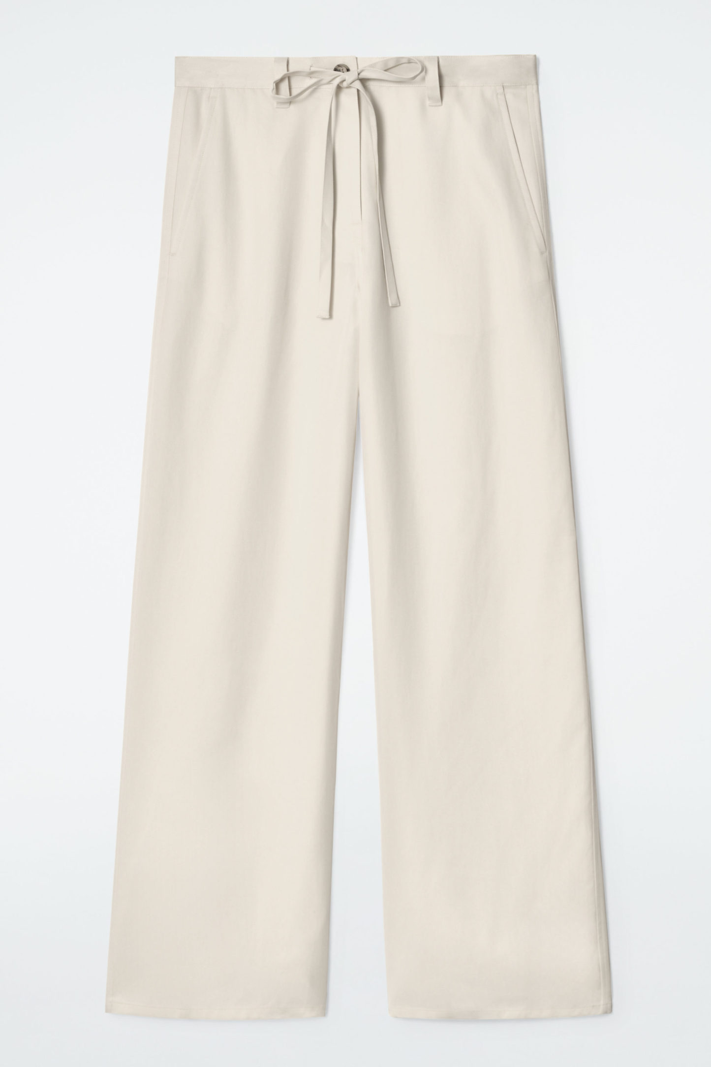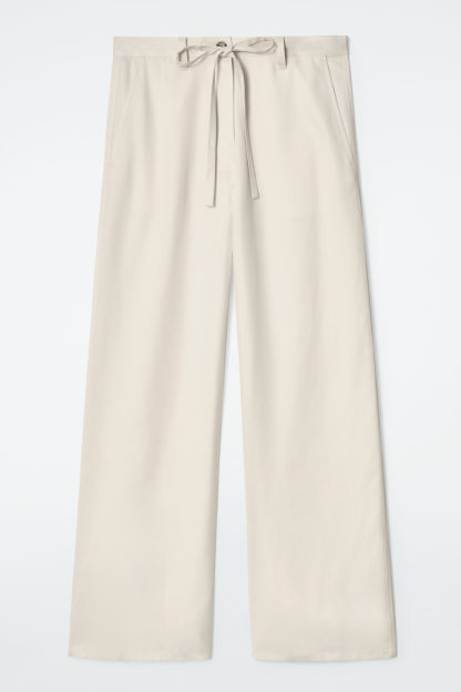 Dessa byxor med vida ben genomsyras av tidlös charm och är lätta att styla med stickade plagg, enkla linnen och resen av din garderob. De har en ledig silhuett med dragsko i midjan och diskreta fickor.