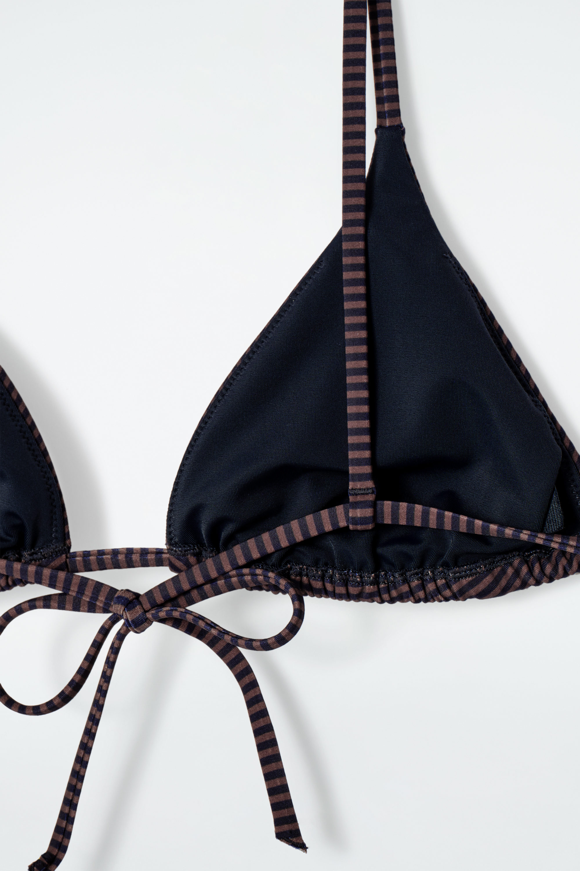This bikini top is a timeless option for days spent in the sun. Decorated with navy and chocolate-brown stripes, it's cut with moulded triangle cups and has delicate rouleau straps. It's a natural choice for getaway packing; style it with the matching bikini briefs.