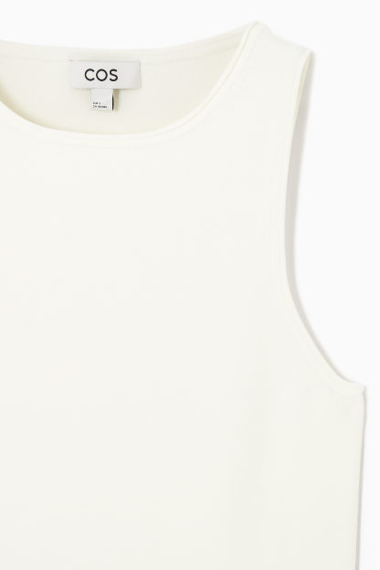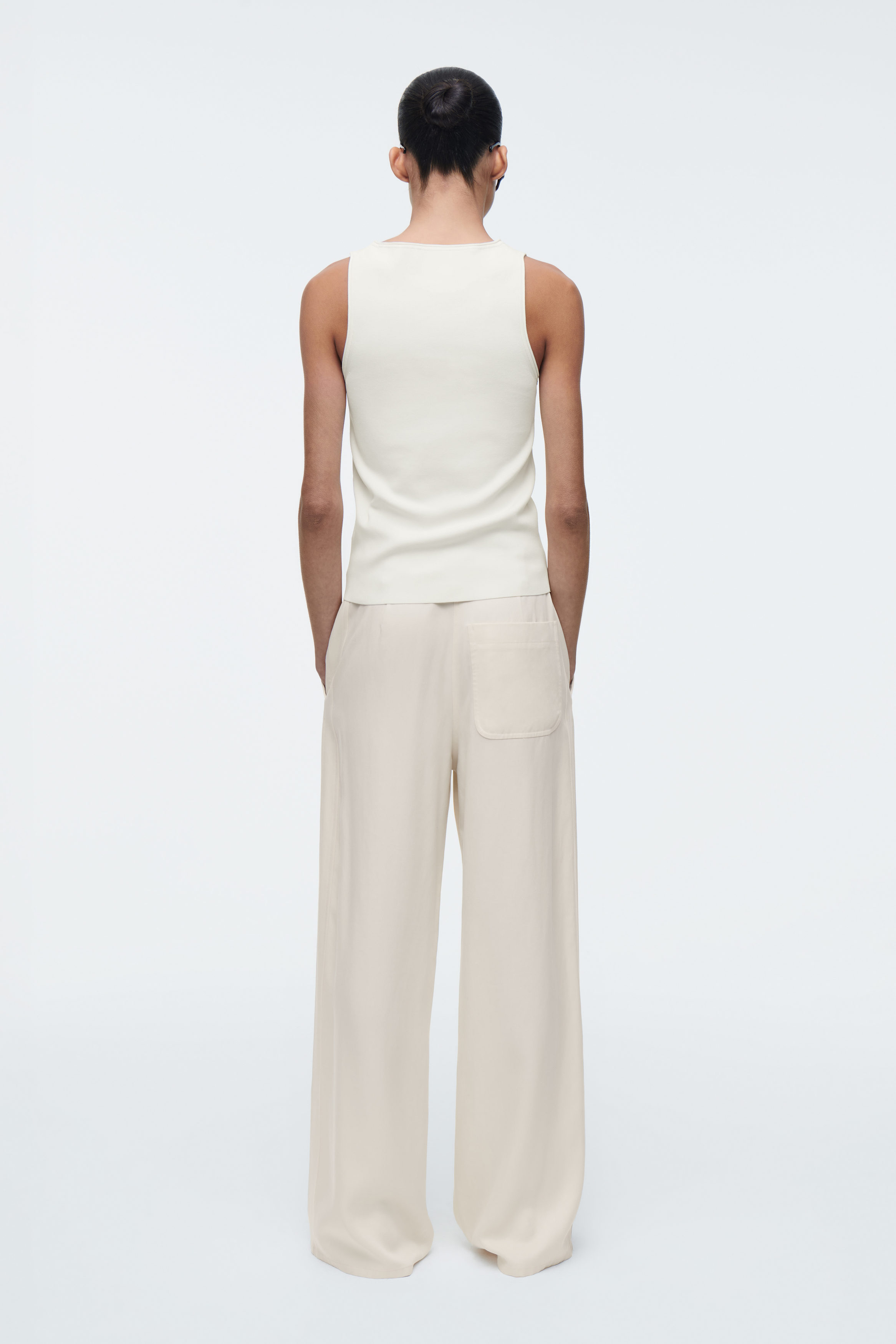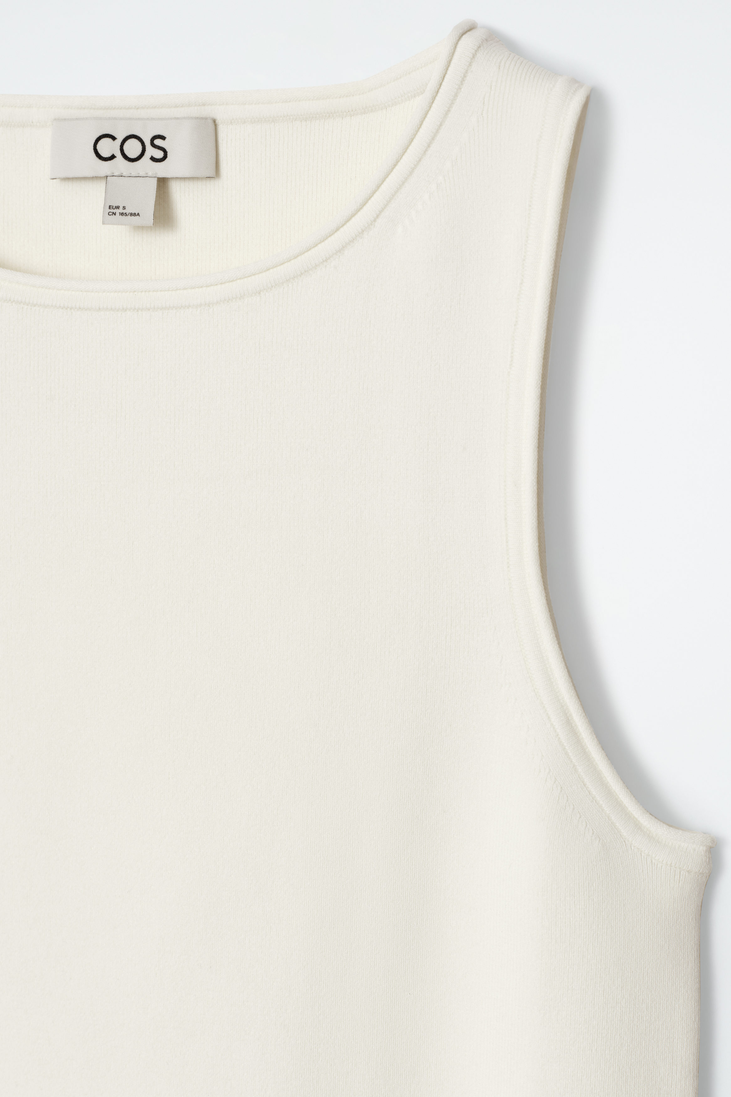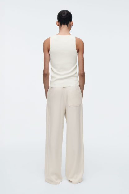 Grunden för varje cthtos-kollektion består av förfinade basplagg som det här moderna linnet. Det har en dov, elfenbensvit nyans och är gjort av ett stickat material i stället för klassisk trikå och har subtilt rörformade kanter.