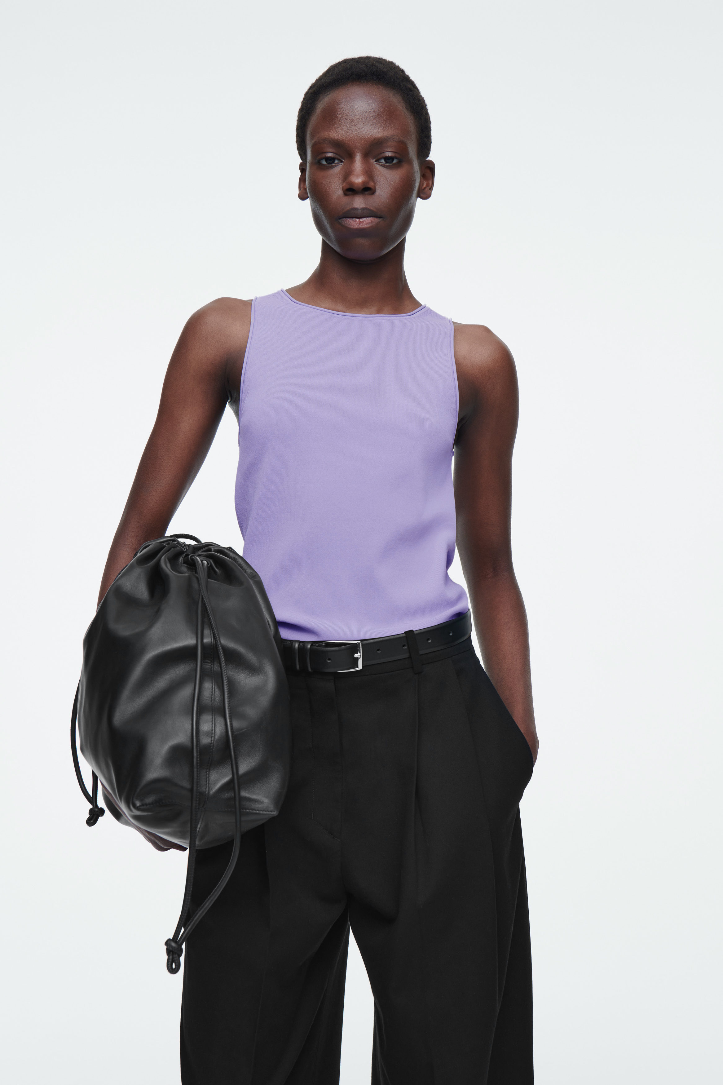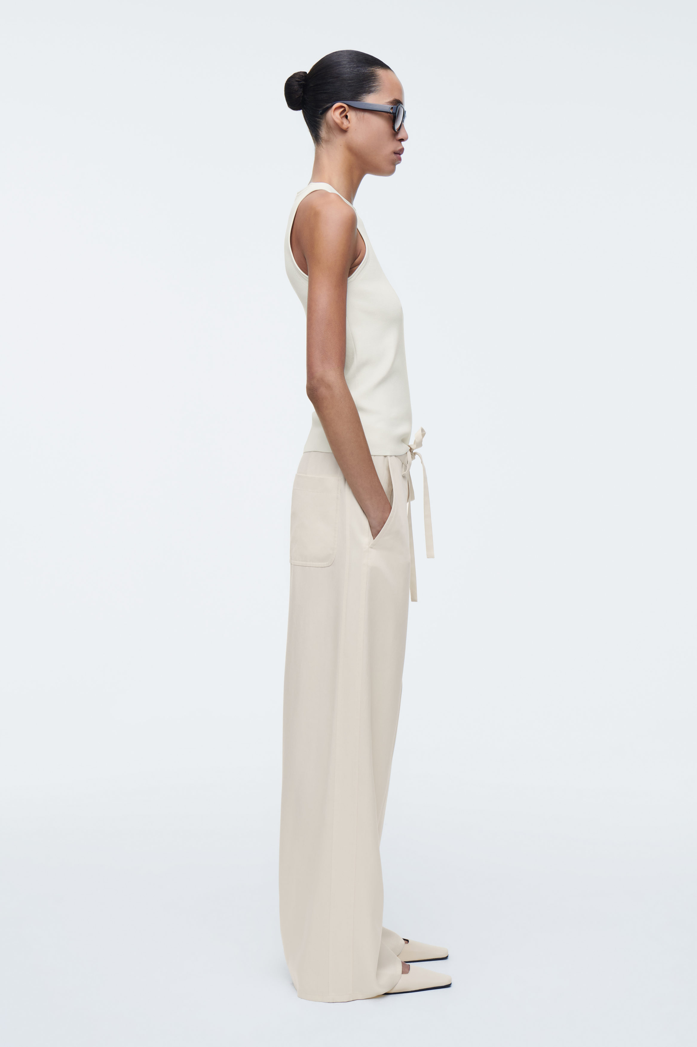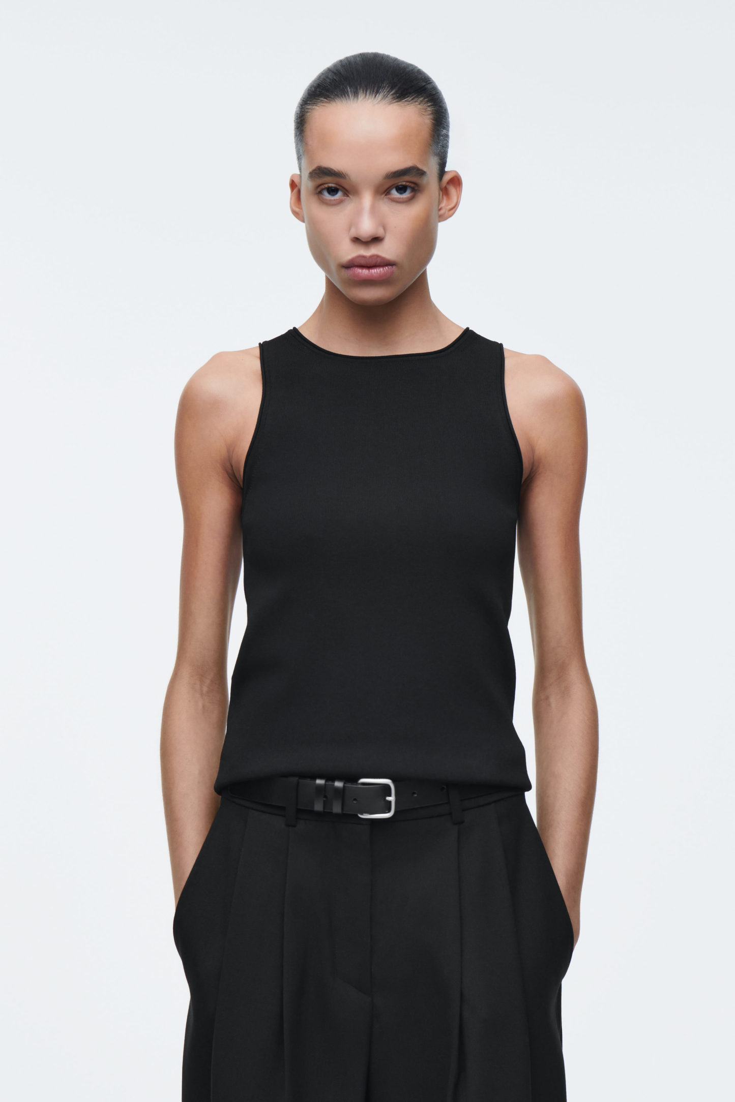 Grunden för varje cthtos-kollektion består av förfinade basplagg som det här moderna linnet. Det har en dov, elfenbensvit nyans och är gjort av ett stickat material i stället för klassisk trikå och har subtilt rörformade kanter.
