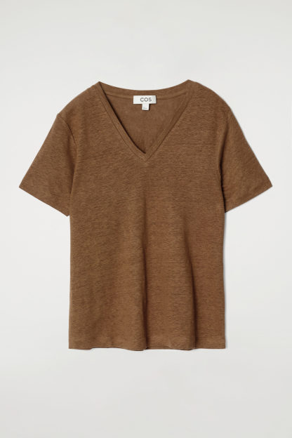 The cthtos womenswear team present an everyday icon, perfected. This refined T-shirt is crafted from 210gsm European Flax™ jersey, chosen for its natural breathability and soft handle. It's cut in a classic V-neck shape and comes in an enduring ochre tone.