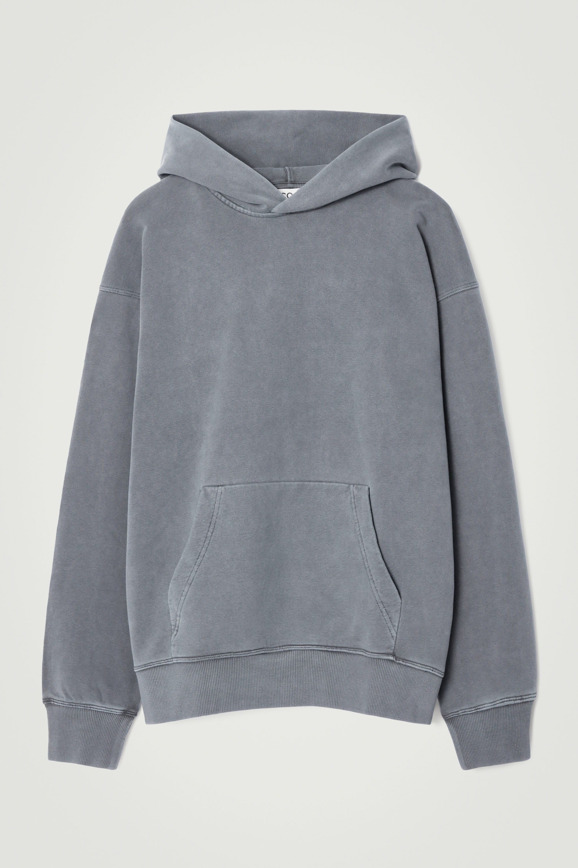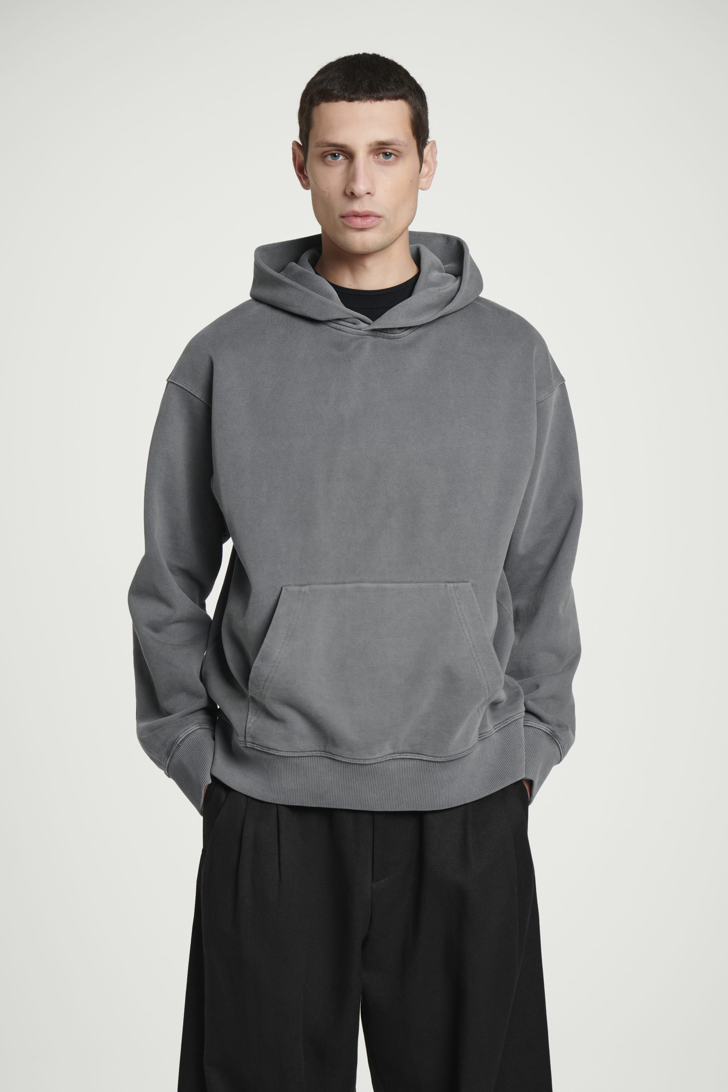 Den här huvtröjan är ett pålitligt basplagg med fokus på en bekväm och avslappnad känsla. Den är gjord av en mjuk trikåblandning av ekologisk och återvunnen bomull som tvättats för en ingången känsla i en design med ingången känsla och påsydd framficka samt ribbade muddar.