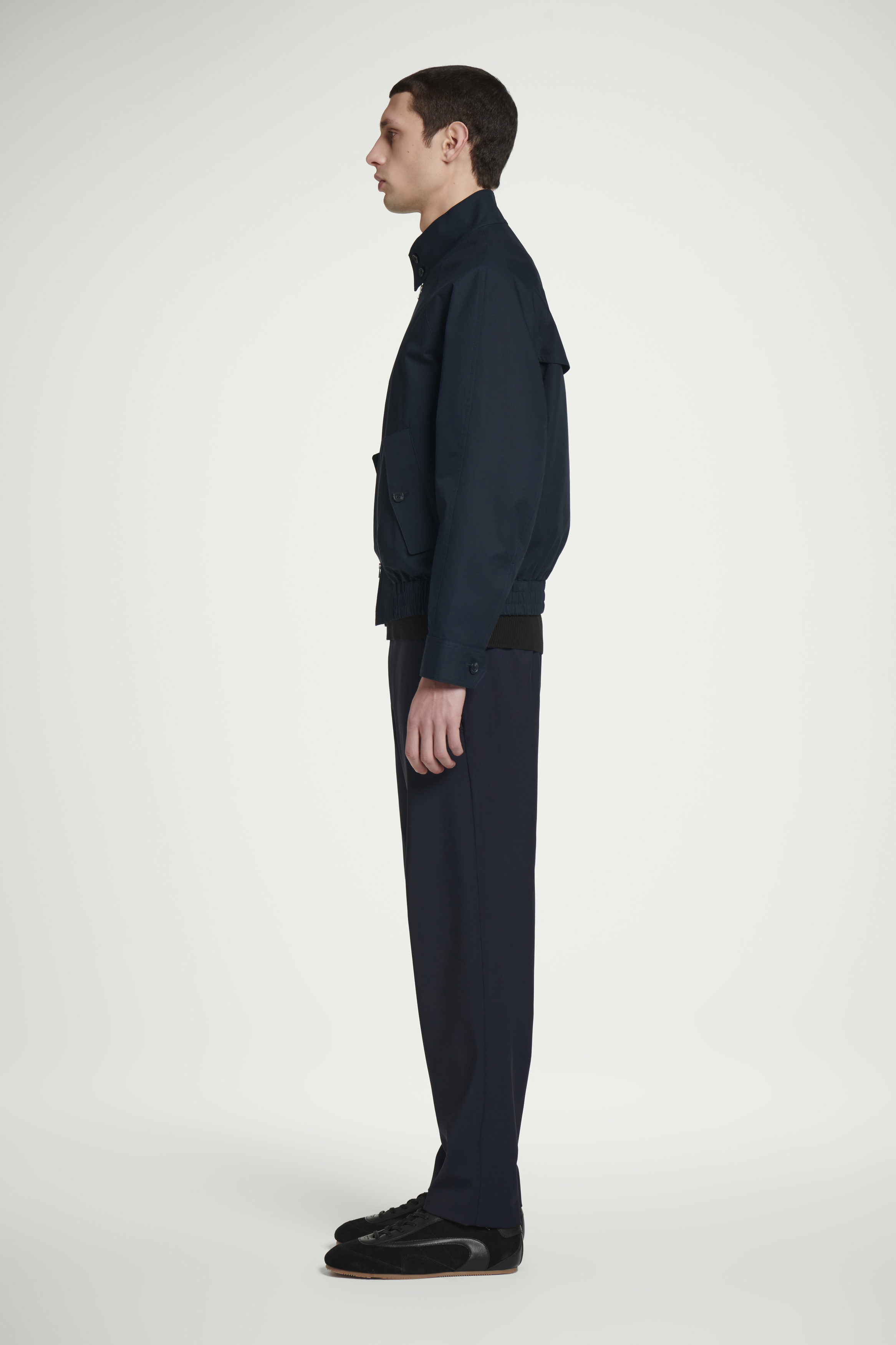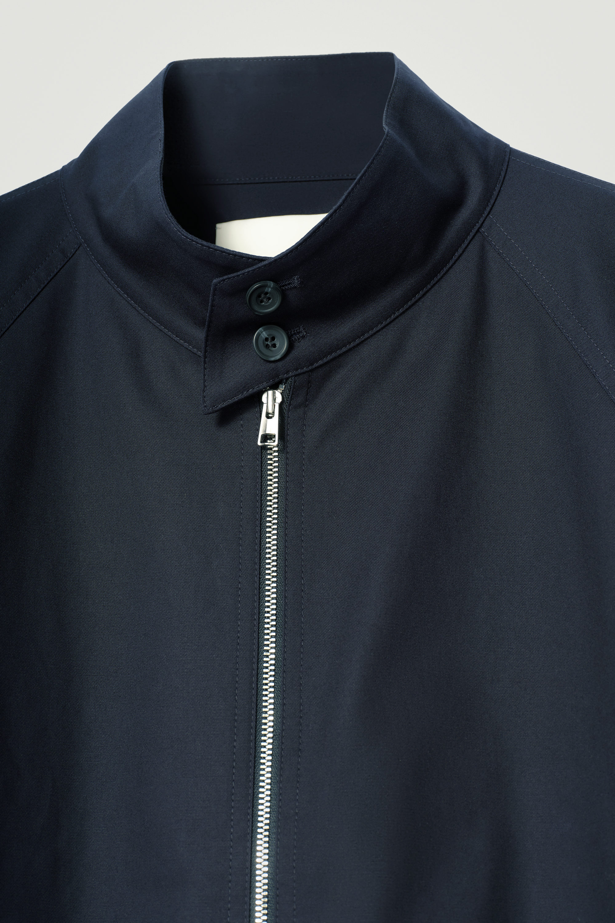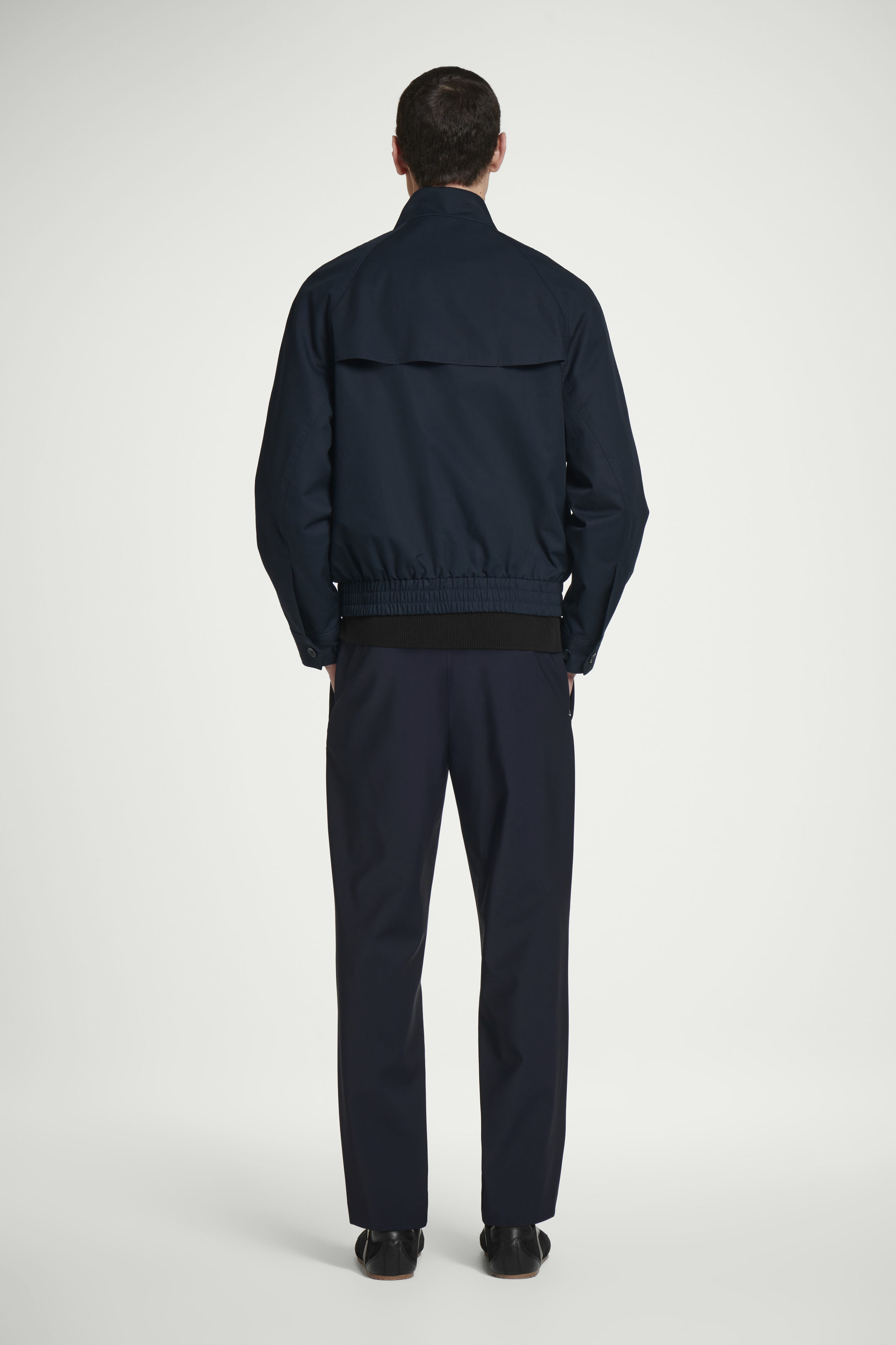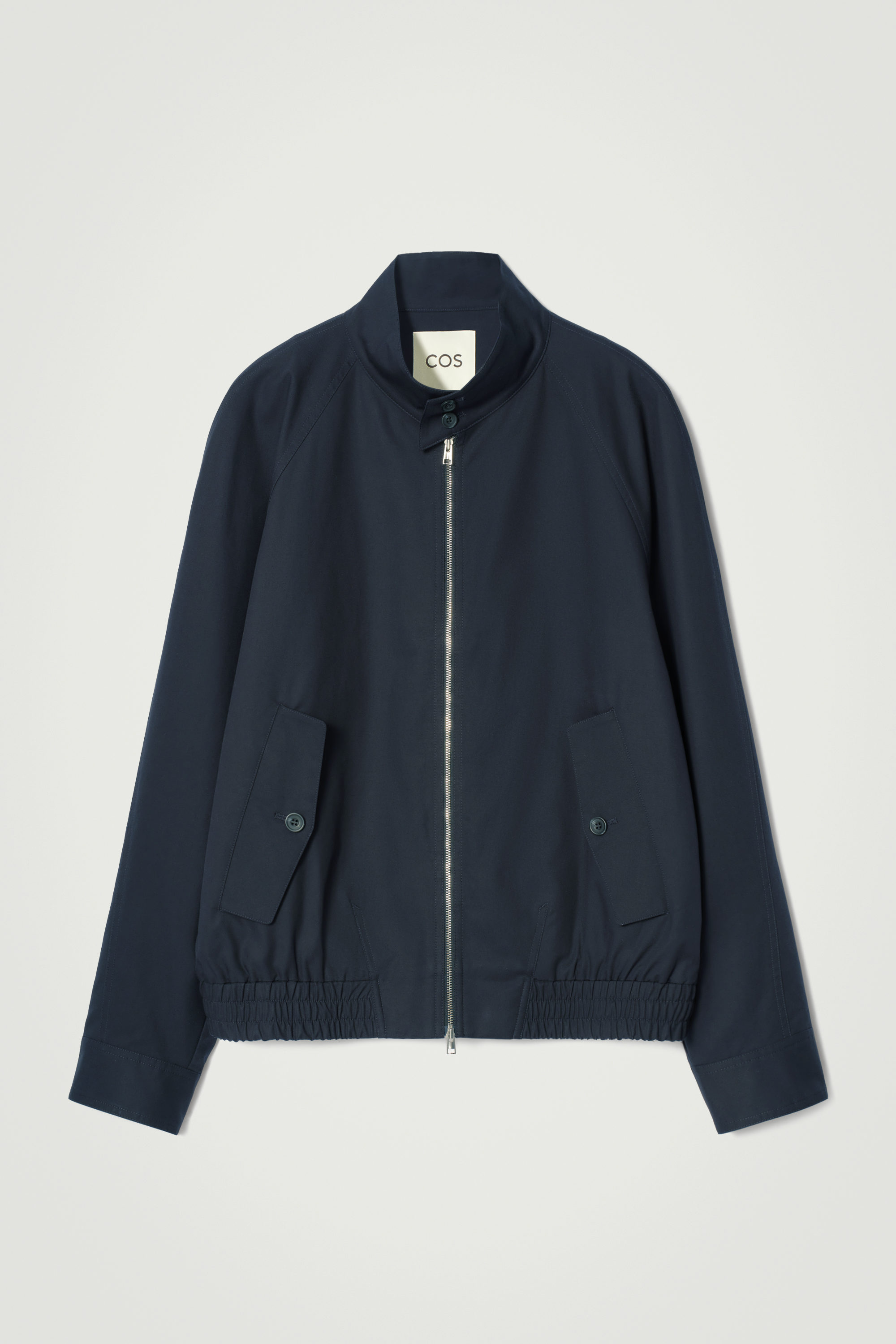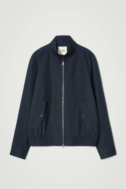 This Harrington jacket is a fusion between smart and casual design. It's crafted from water-repellent cotton-twill to keep you dry in light showers and rendered in a classic navy tone that'll go with almost anything in your wardrobe. The collar, flap pockets and cuffs secure with buttons, and the waistband is comfortably elasticated.