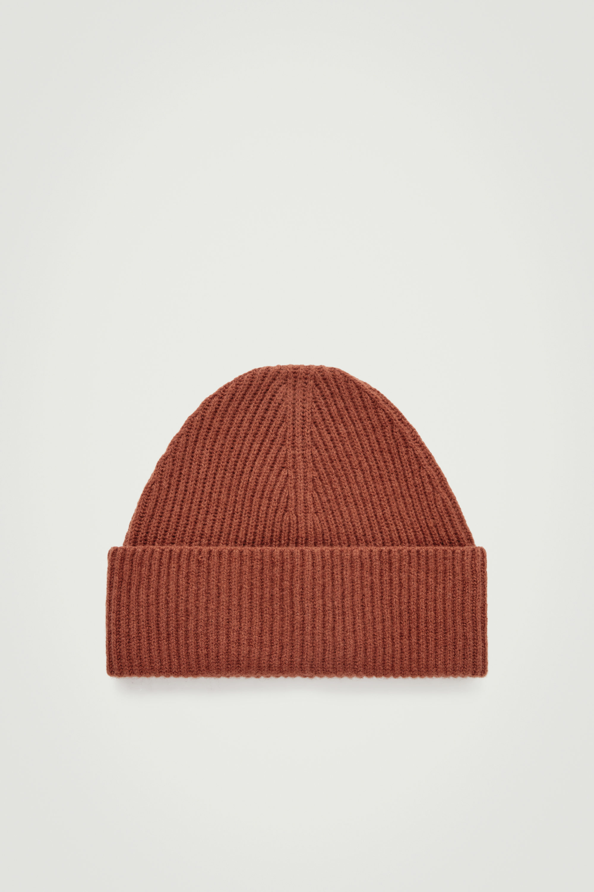 En mysig mössa lägger grunden för din vintergarderob. Denna roströda kreation är stickad i ren RWS-ull med en oversize uppvikt kant och en ribbad konstruktion för isolerande effekt.
