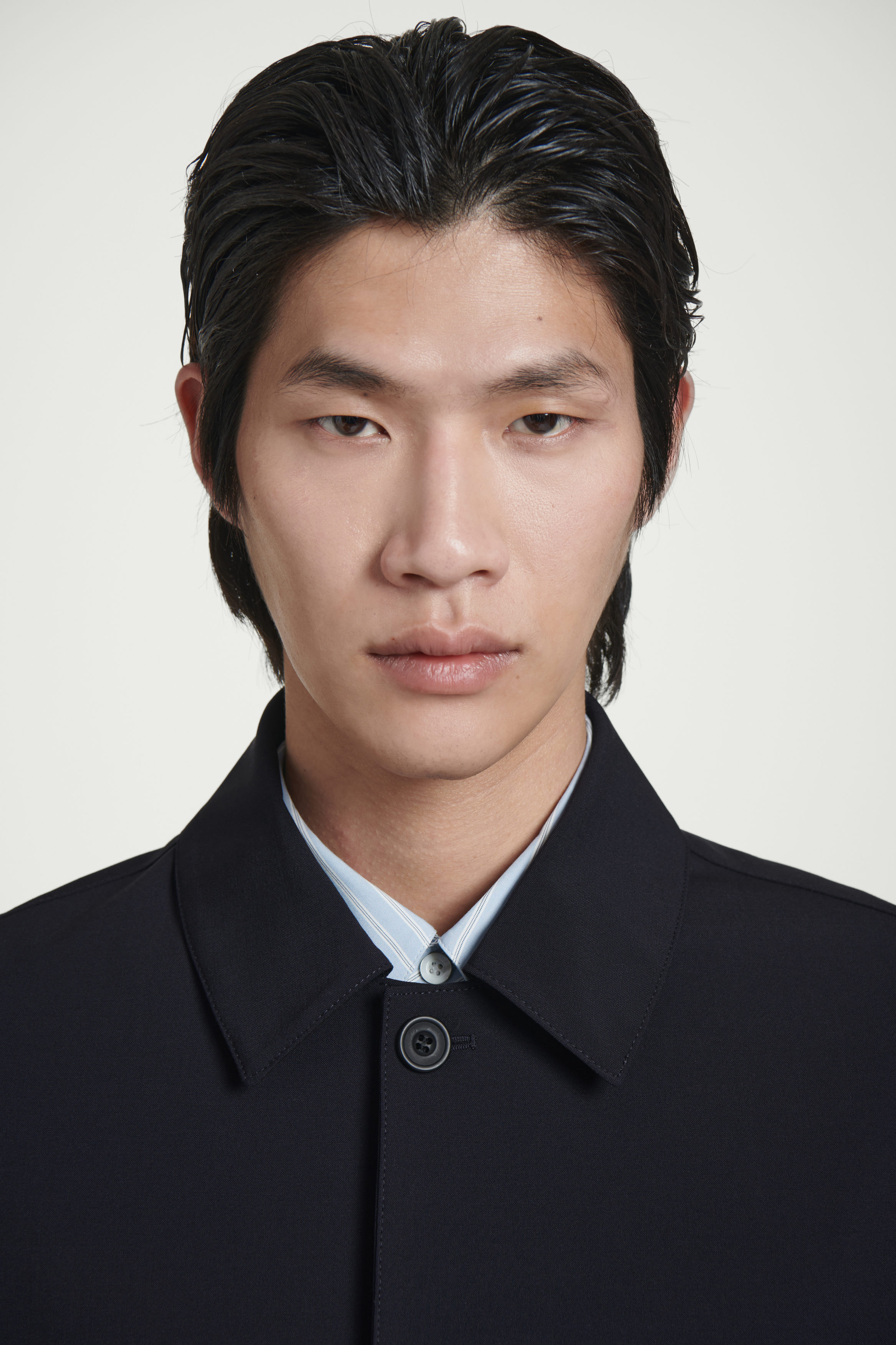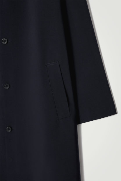 cthtos designteam kombinerar klassiska detaljer med moderna inslag i denna överrock. Den är skickligt tillverkad i en blandning med RWS-ull som är lätt nog för övergångsväder Designen har en spetsig krage, stolpfickor och är helfodrad, medan sprundet bak ger rörelsefrihet.