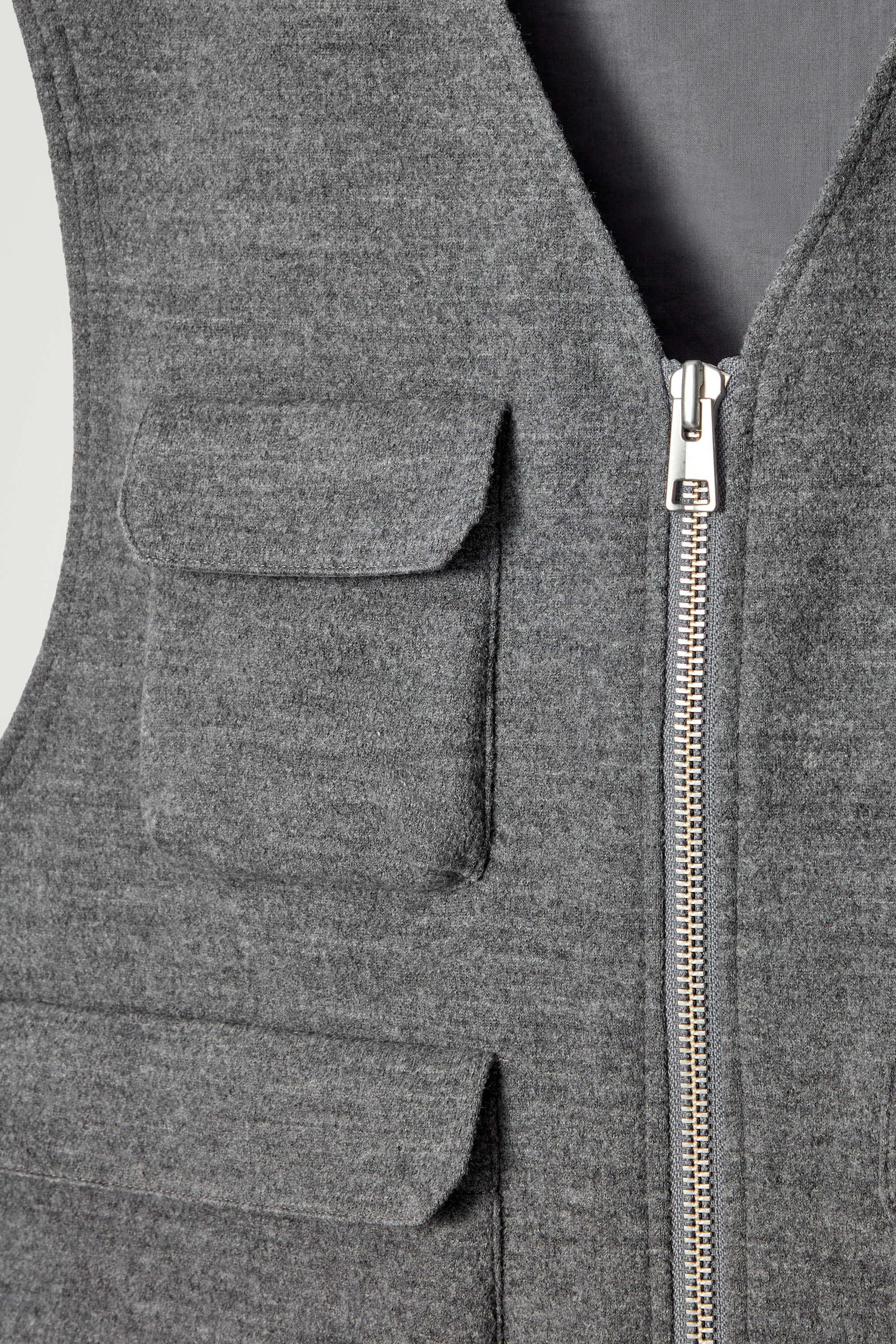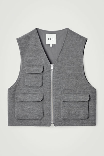 Denna moderna utilityväst är tillverkad i en blandning med RWS-ull och har ett flertal fickor med lock som nickar till klassisk workwear. Den har silverfärgade dragkedjor i sidan så att du kan experimentera med att bära flera lager.