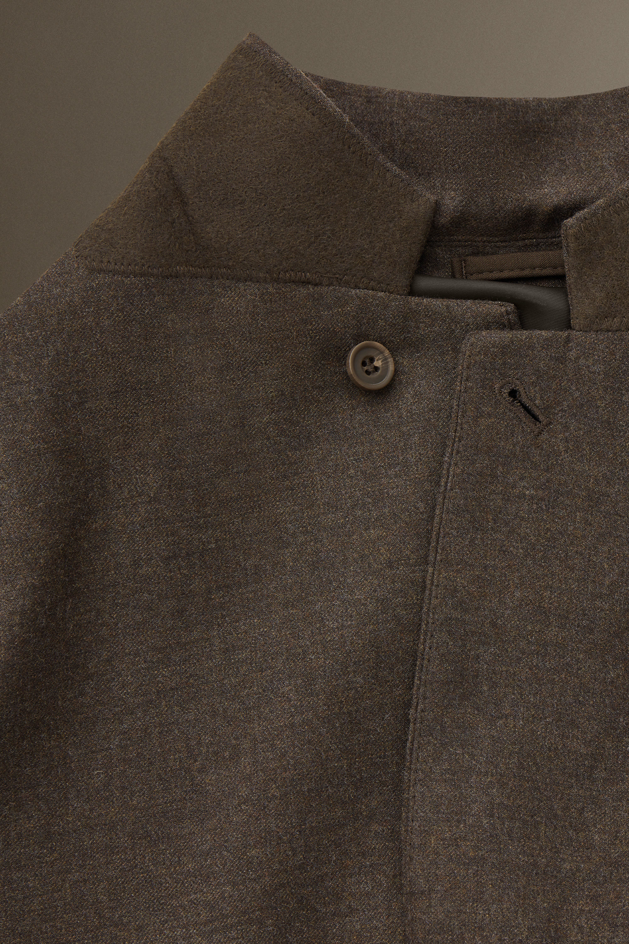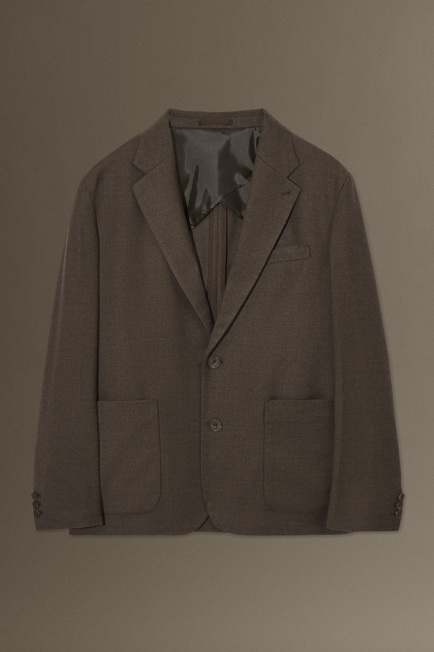 Den här enkelknäppta kavajen är skräddad i vår mest klassiska modell och kombinerar modernt och traditionellt skrädderi – lägg märke till filten på kragens undersida, de funktionella knapparna i ärmsluten, fodret och knäppningsdetaljen på slaget som gör att kragen kan bäras uppvikt. Vi valde ett material i 100 % ullflanell som är certifierat enligt Responsible Wool Standard och har en melerad look som ger tyget djup. Kombinera med de matchande byxorna för en tvådelad kostym.