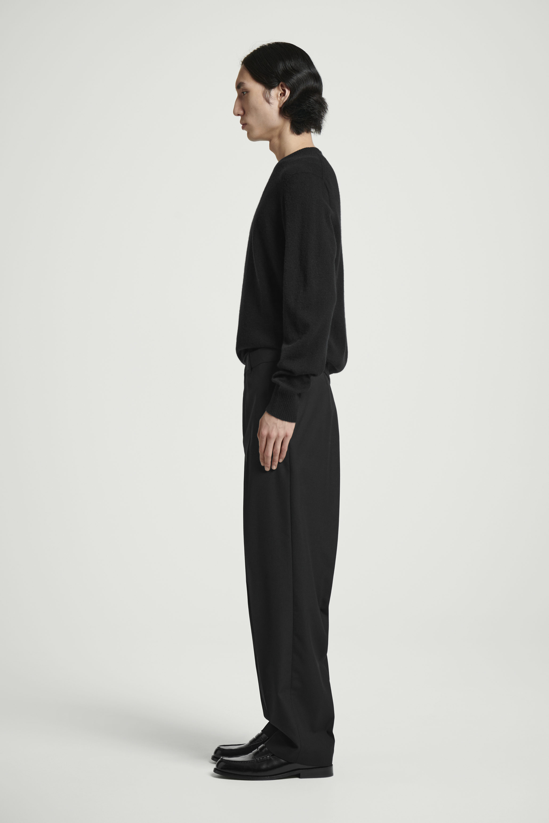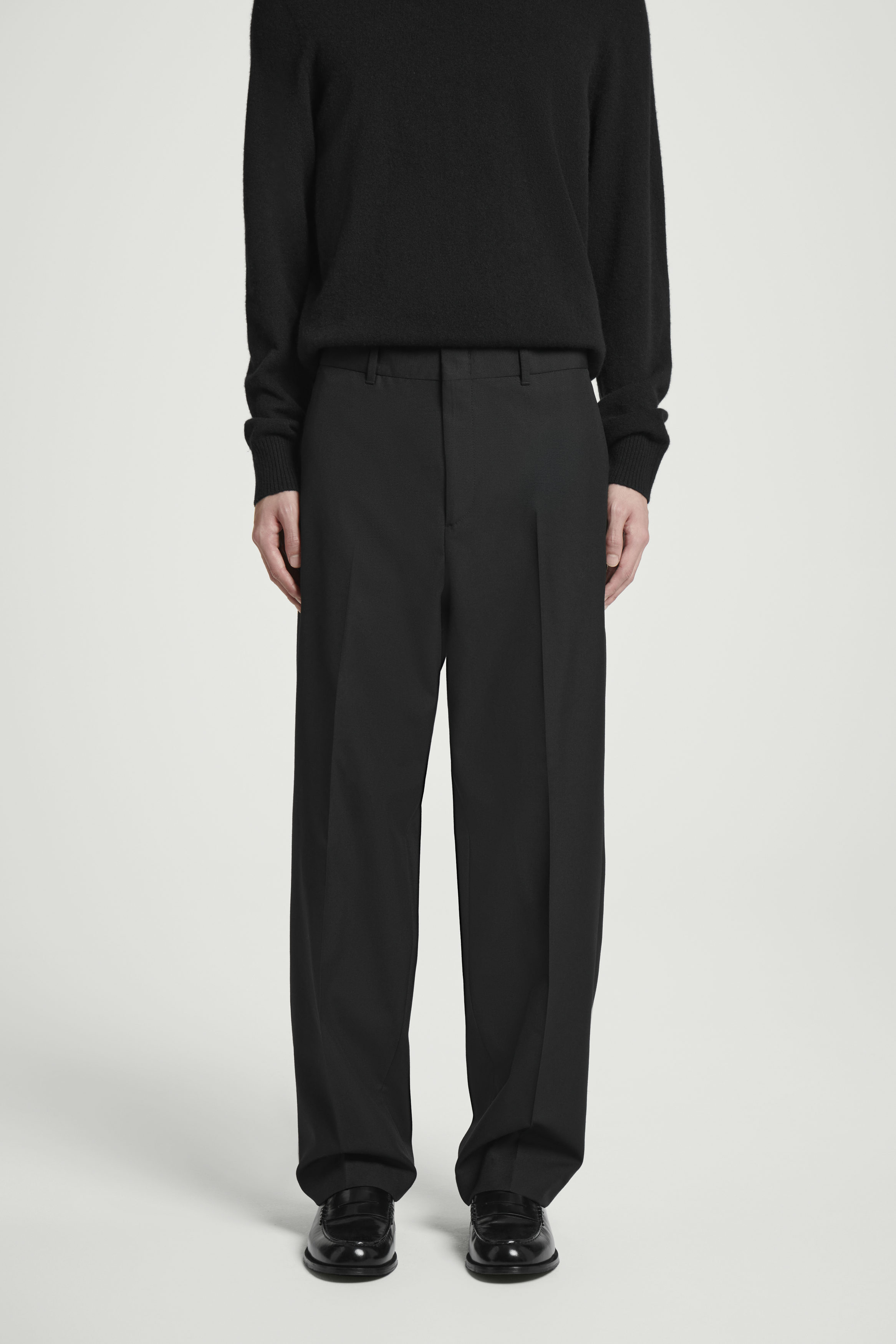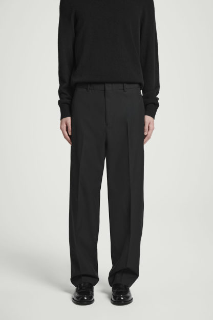Ett par välskräddade byxor är ett måste i varje välklädd mans garderob. De här är sydda av ullhopsack och skurna till en ledig modell med raka ben som landar på skorna. Gott om detaljer från klassisk skräddarkonst – stolpfickor, hällor och dold hyskknäppning. Styla gärna byxorna med den matchande kavajen.